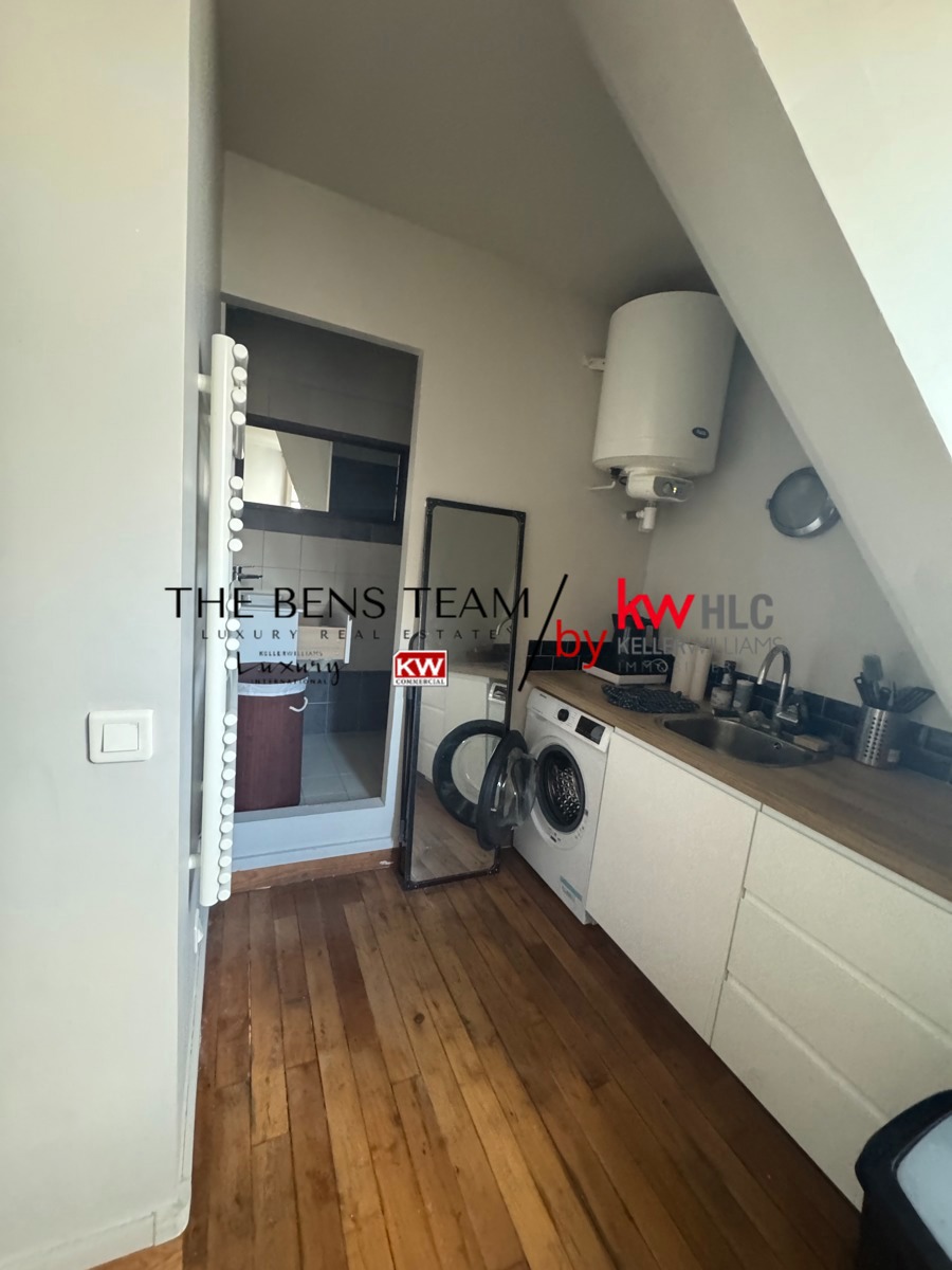 Il se compose d’une pièce à vivre, d’une kitchenette séparée équipée, d’une salle de douche et d’un WC séparé. Adresse prisée, calme et pratique — pied-à-terre ou investissement facile à louer.