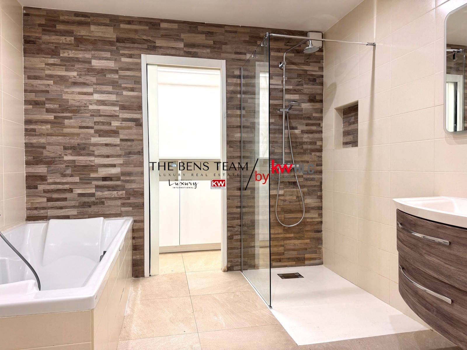 Il se compose d’une entrée en étoile, d’un double séjour lumineux de 32 m² (possibilité 3e chambre), d’une cuisine indépendante aménagée et équipée, d’une suite parentale de 24 m² avec dressing, d’une deuxième chambre, d’une salle de bains complète avec douche à l’italienne et baignoire, d’un WC séparé et d’une buanderie.