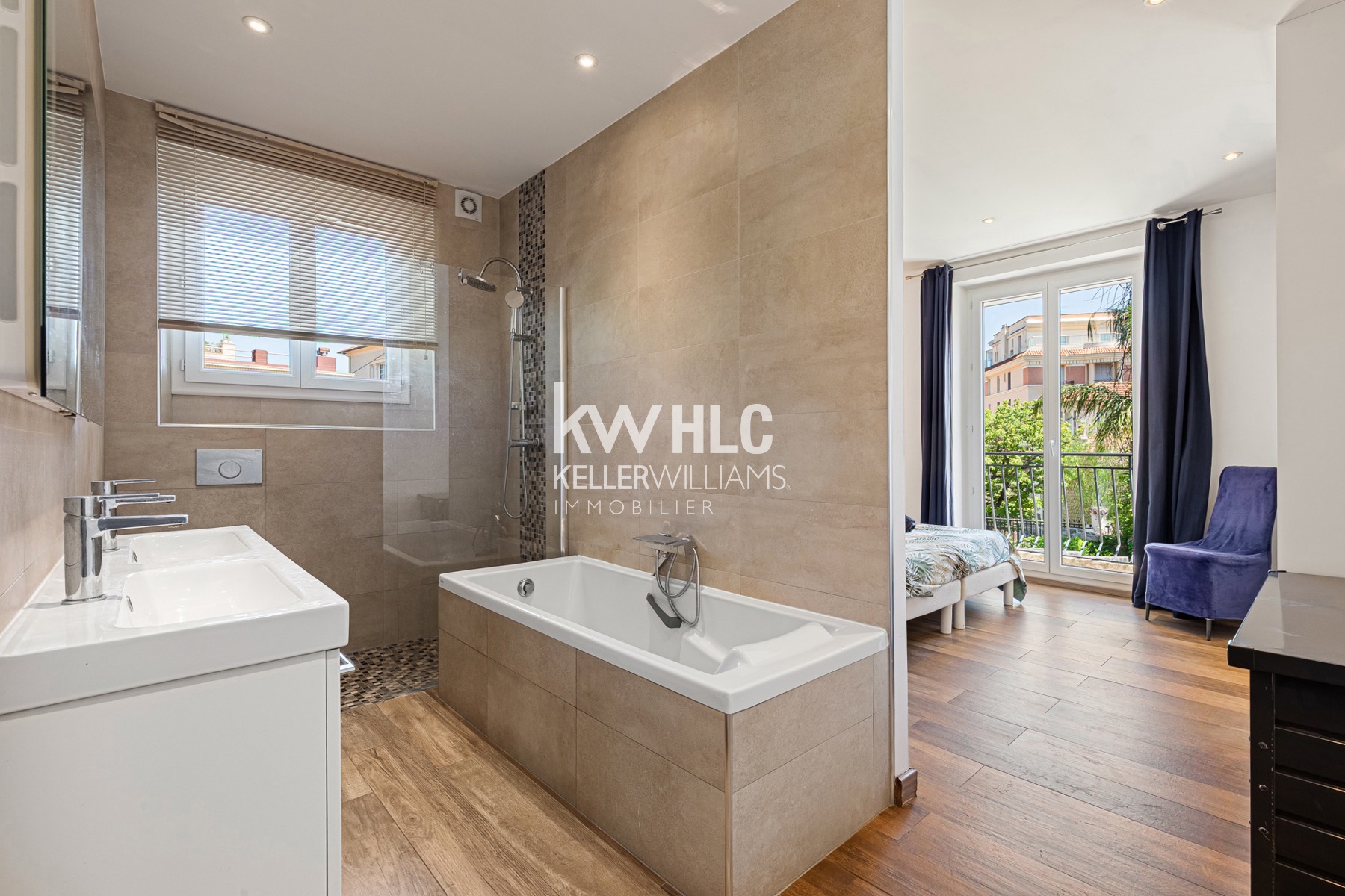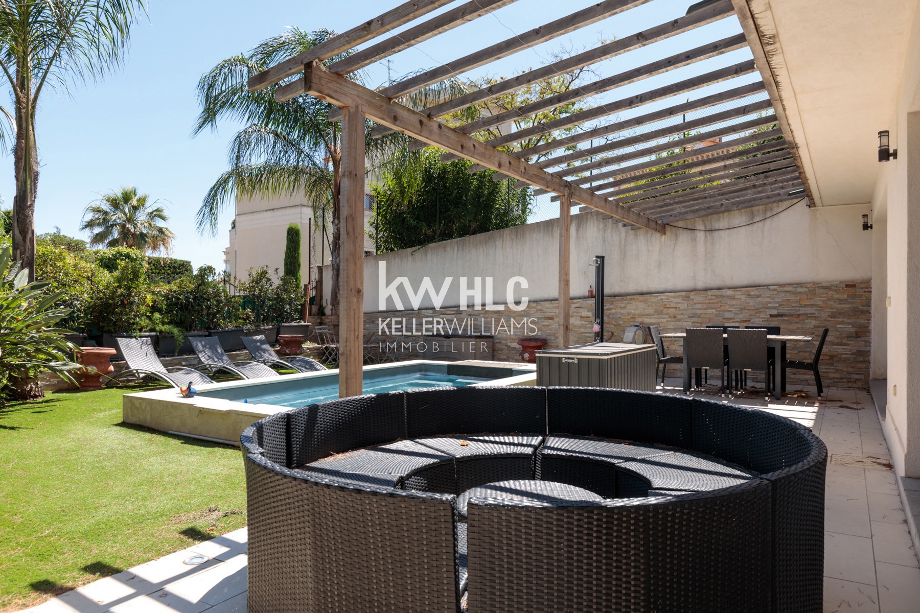 Cannes - Stanislas : Situé en plein cœur du quartier Stanislas, à proximité immédiate du square Méro, des commodités, de La Croisette et du marché Forville, KW HLC vous propose de découvrir cette maison de ville indépendante et rénové, d'une superficie globale de 210m² habitable (140m² loi carrez) avec jardin et piscine. Elle se compose de la manière suivante : Au rez-de-chaussée : une entrée donnant accès à un lumineux et spacieux séjour salon exposé Sud donnant sur le jardin et la piscine, agrémenté d'une cuisine ouverte toute équipée et aménagée, un coin buanderie ou arrière cuisine donnant sur un petit espace extérieur, une chambre parentale avec rangements et salle d'eau avec WC, ainsi qu'un WC invité. Au premier étage : un hall permettant d'accéder à trois chambres dont une parentale avec salle d'eau, WC et des rangements ainsi qu'une terrasse privative avec aperçu mer, une salle de bain avec WC commune et une terrasse de 17m² à l'abri des regards. Au deuxième étage : la belle surprise de la maison, un superbe toit terrasse de 70m² bénéficiant d'une vue mer et d'une cuisine d'été, parfait pour accueillir des évènements. A l'extérieur : un beau jardin avec sa belle piscine exposé Sud. En complément 3 places de parking privatives Belle rentabilité locative pour saisons et congrès compte tenu du potentiel évènementiel de la villa ainsi que de son emplacement privilégié.