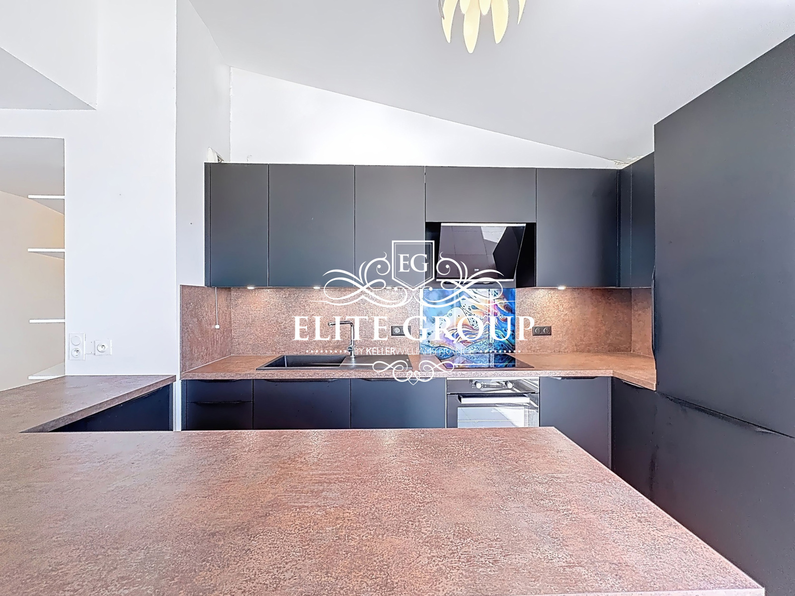 Situé au calme et proche des grands axes, il dispose d'une entrée, un séjour cathédrale avec cuisine ouverte équipée le tout donnant sur une terrasse 40m2 Sud / Sud Ouest ainsi qu'un WC invité.