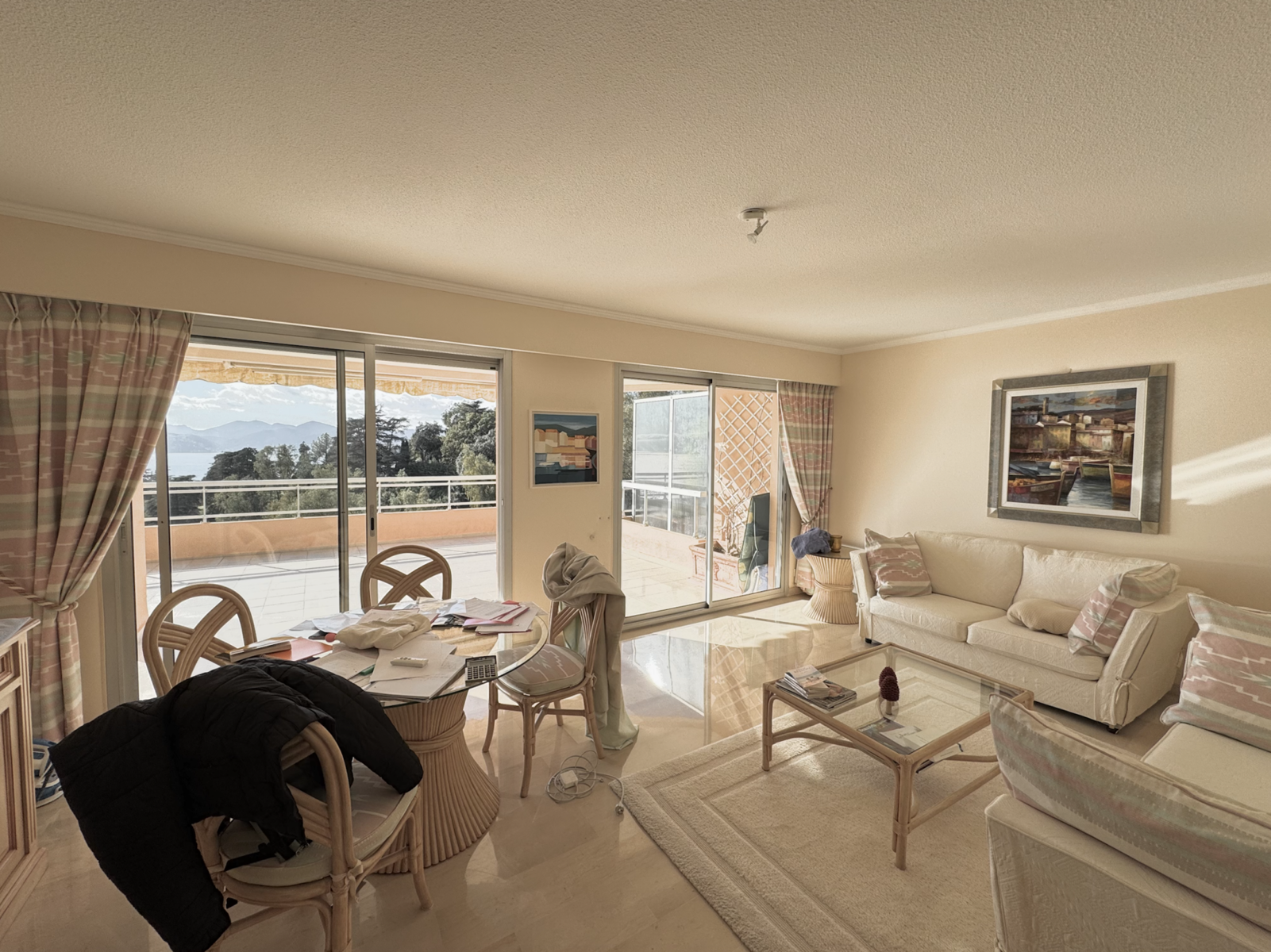 Nous vous proposons ce superbe appartement de 63m² au sein de la résidence la plus luxueuse de Cannes qui se nomme la Croix des Gardes avec gardien, piscine et parc, à seulement 10 minutes en voiture de la Croisette et du Palais des festivals. L'appartement se compose comme suit : - Une grande pièce de vie baignée de lumière avec une magnifique vue mer sur l'Ils de Lérins - Une cuisine entièrement équipée qui peut s'ouvrir sur le séjour - Une suite parentale avec dressing et baignoire - Une autre suite avec sa salle de bain composé d'une douche - Un WC indépendant - Une grande buanderie. - Un espace extérieur de plus de 60 m2, ce sont les plus grandes terrasses de cette résidence avec une vue époustouflante sur la mer. Au calme absolu et sans vis à vis, l'appartement a été conçu afin d'offrir à ses occupants une superbe vue mer et Iles de Lérins depuis toutes les pièces ce qui en fait un bien d'exception. Notez également que l'appartement est entièrement climatisé via le système interne de la résidence pour un confort optimal. S'ajoute à l'appartement un garage double (en largeur) de 24 m2. Pour vous détendre, vous pourrez profiter du magnifique parc parfaitement entretenu avec ses 2 piscines.