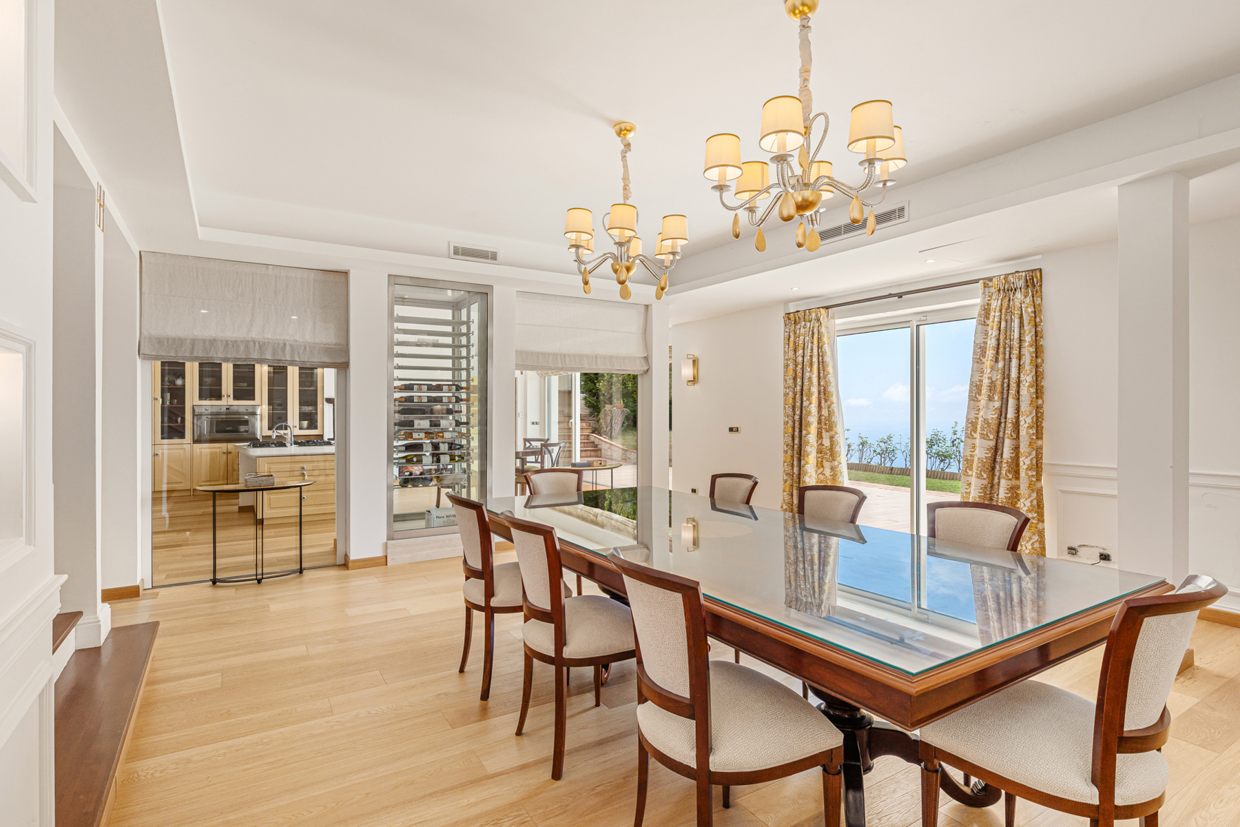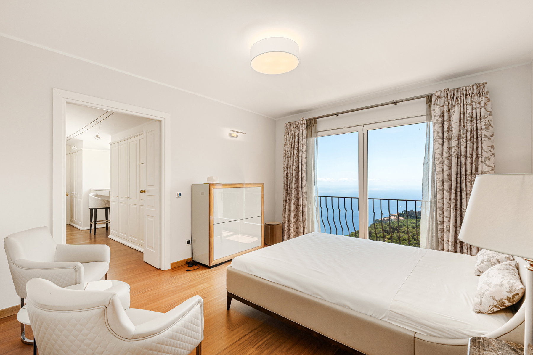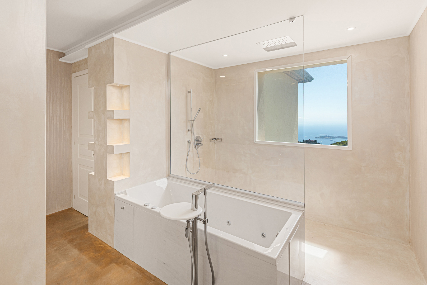 Idéalement située au calme, à quelques minutes du village d’Èze et de Monaco, cette villa de style néo-provençal offre une vue à couper le souffle sur la mer, le village perché d’Èze et la presqu’île de Saint-Jean-Cap-Ferrat. La belle entrée de la villa assure un stationnement facile grâce à son carport et son garage, permettant de stationner jusqu’à cinq voitures. Exposée sud-ouest, elle bénéficie d’un ensoleillement optimal toute la journée. L’un des atouts majeurs de la villa réside dans ses volumes généreux, avec une surface habitable d'environ 400 m² répartie sur trois niveaux, tous ouverts sur la mer. Elle comprend quatre chambres, dont une élégante suite parentale avec dressing et salle de bains face à la mer. L’espace de vie, convivial et lumineux, s’articule autour d’un vaste salon avec cheminée et d’une magnifique vue mer et village, avec un élégant escalier menant à une salle à manger accueillante et une cuisine professionnelle parfaitement équipée, idéale pour un chef, le tout donnant sur le jardin, toujours avec une belle vue mer. Pour plus de confort, un appartement deux pièces attenant en rez-de-jardin accueille les invités, ainsi qu’une cabane formant un studio indépendant pour le personnel. Une pièce en rez-de-jardin peut également être aménagée en salle de sport ou en pool house. Le terrain de 2 630 m² offre un beau potentiel d’aménagement paysager. Partiellement rénovée, la villa présente encore un beau potentiel d’embellissement pour en faire une propriété d’exception. Un bien rare à découvrir sans tarder !