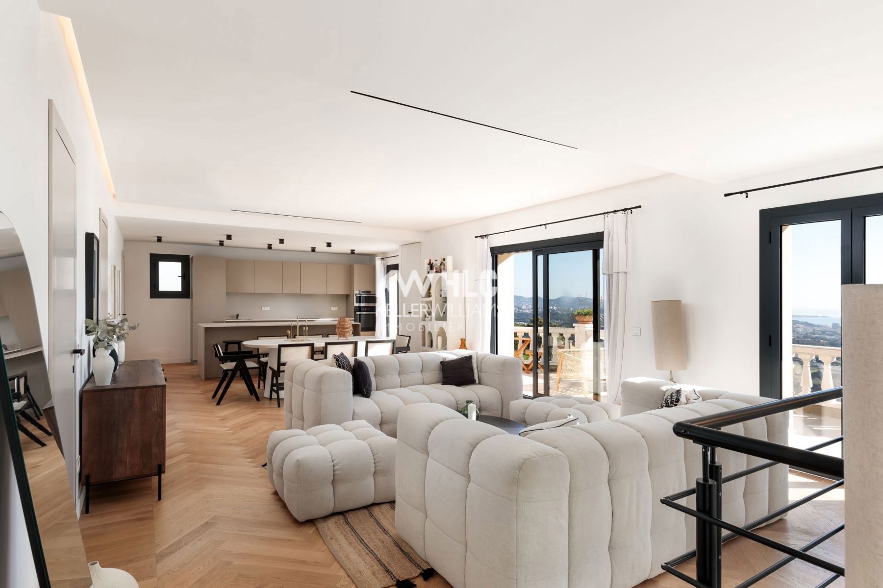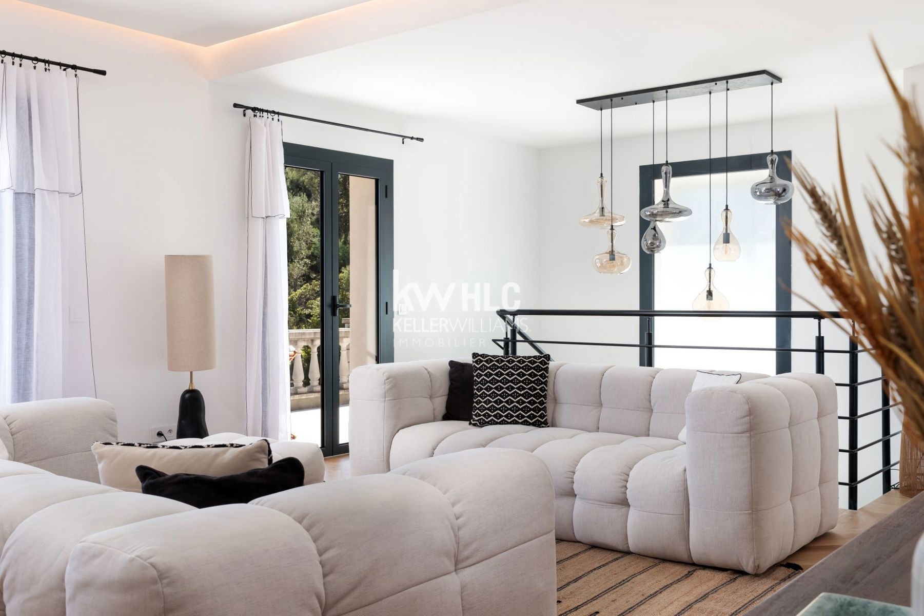 Bienvenue dans votre villa vue mer située sur les hauteurs de Mandelieu ! Véritable havre de paix, avec sa vue mer panoramique, cette villa complètement rénovée aux prestations haut de gamme vous étonnera de part sa clarté et sa vue époustouflante. Avec une surface habitable généreuse de 200 m², vous trouverez de plain pied deux chambres avec salle de bains, un beau séjour, une cuisine ouverte et équipée. Le tout donnant sur une très large terrasse exposée plein sud sur une vue mer panoramique. Les deux autres chambres avec salle de bains ainsi que la master room se trouvent au niveau de la piscine, face mer, où vous pourrez vous détendre en admirant la vue. Etat impeccable, villa clef en main, la décoration actuelle et les meubles sont du style contemporain. Les aménagements extérieurs sont conçus pour offrir un cadre de vie agréable, avec des espaces de détente et de convivialité où vous pourrez profiter du climat ensoleillé de la Côte d'Azur. Nichée sur les hauteurs, cette villa offre une tranquillité absolue et une vue mer à 180 degrès. Dans l'ensemble, cette magnifique villa combine parfaitement le confort, luxe et tranquillité. Lieu de vie idéal pour se détendre et profiter d'un cadre agréable. N'hésitez pas à prendre contact avec notre agence immobilière KW HLC pour une première visite de cette villa à vendre. Les informations sur les risques auxquels ce bien est exposé sont disponibles sur le site Géorisques : www.georisques.gouv.fr