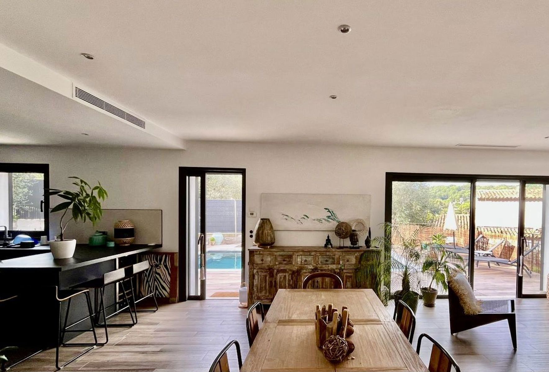 VILLA CONTEMPORAINE 6 PIECES AVEC PISCINE Venez découvrir cette villa récente située à VALLAURIS. Sur le littoral méditerranéen - Venez découvrir sans tarder à VALLAURIS cette villa récente F6 ( 145 m2) de belle construction avec des matériaux de qualité implantée sur un terrain arboré de plusieurs oliviers d'environ 1500 m2 au calme. Très bien agencée ,elle vous offre au rez de chaussée une grande pièce à vivre qui s'ouvre sur la terrasse et la piscine au sel, un coin salon, une cuisine américaine une master suite avec dressing et salle d'eau , un wc indépendant . A l'étage, 3 chambres, 2 salle d'eau , plusieurs rangements , un wc indépendant. A noter les atouts de ce bien :La climatisation réversible gainée , le chauffage au sol ,la possibilité d'installer une cheminée ,les volets électriques, baies à galandage, store électrique . En complément, il y a un petit garage , plusieurs places de parking. A noter que l 'accès à la villa depuis l'aire de stationnement se fait par un petit chemin pentu d' une vingtaine de mètres. Proche de toutes commodités, des établissements scolaires et des transports. Le centre commercial Leclerc à quelques minutes , ainsi que l'accès à l'autoroute. Les risques auxquels ce bien est exposé sont disponibles sur le site Géorisques : www.georisques.gouv.fr. N'hésitez pas à prendre contact avec notre agence immobilière KW HLC pour une première visite de cette maison de 6 pièces à vendre ou de contacter Mme Sarah Beuret au 06 81 45 88 88 pour organiser une visite.