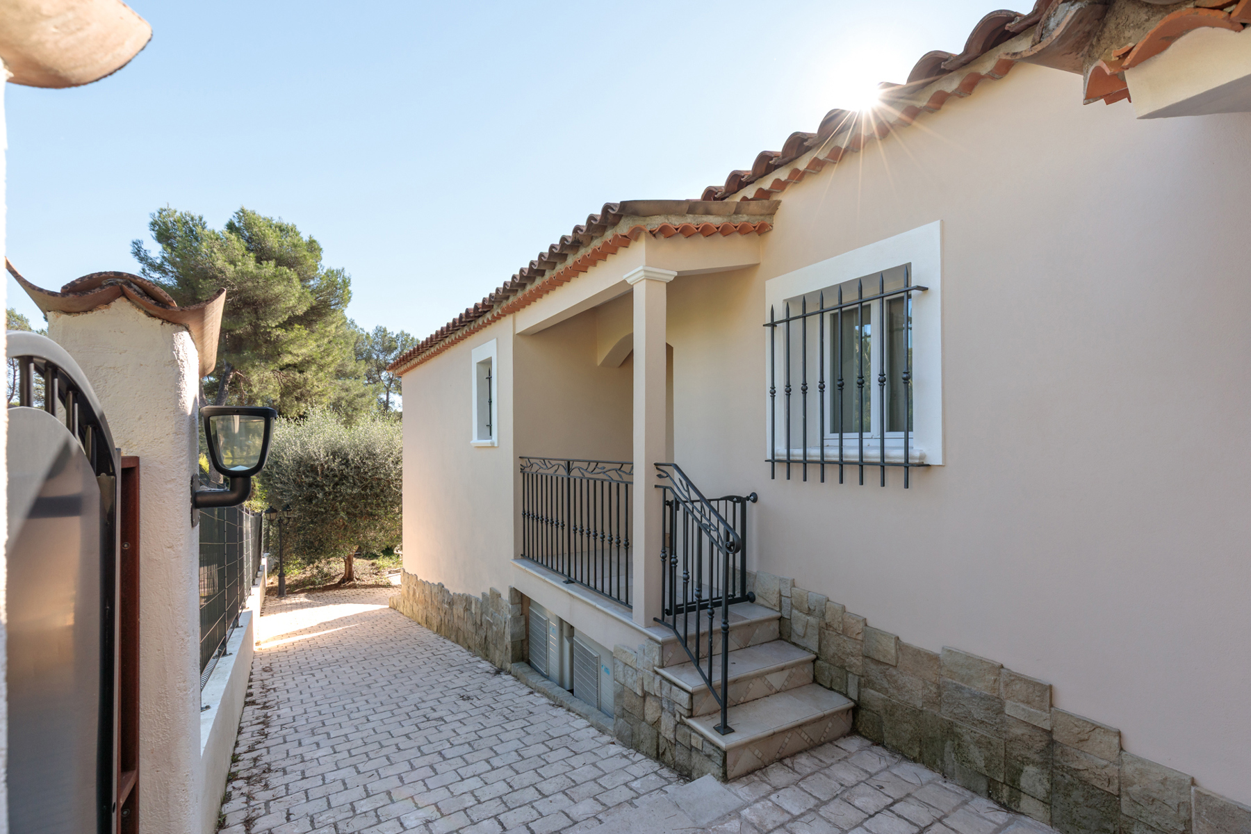 A vendre à Mougins une très belle villa individuelle de 162 m2 surface carrez surface au sol environs 200 m2 avec sa piscine sur un terrain de 800 m2 .dans une impasse . Cette villa en excellent état est composée de 4 chambres et 1 chambre en dressing et 3 salle de bain . Le bel espace salon séjour avec cheminée et plafond cathédrale donne directement sur une terrasse s'ouvrant sur la piscine et le jardin exposé sud ouest . Cette maison complètement cloturée est sur 2 niveaux offrant a une famille avec enfants ou aux amis beaucoup d'indépendance . La grande cuisine indépendante totalement équipée est toute neuve et très pratique car elle s'ouvre sur la terrasse et elle est située juste a coté du salon séjour. La villa a été complètement rénovée avec de beaux matériaux à l'intérieur comme a l'extérieur avec son ravalement . Coté stationnement la villa dispose d'un très grand garage et d'un car port donc on peut stationner au moins 4 voitures à l'intérieur de la propriété. Le terrain de 800 m2 environs est très facile d'entretien et offre aucun vis a vis a part les couchers de soleil . A visiter rapidement si l'on veut poser ses valises sans travaux .