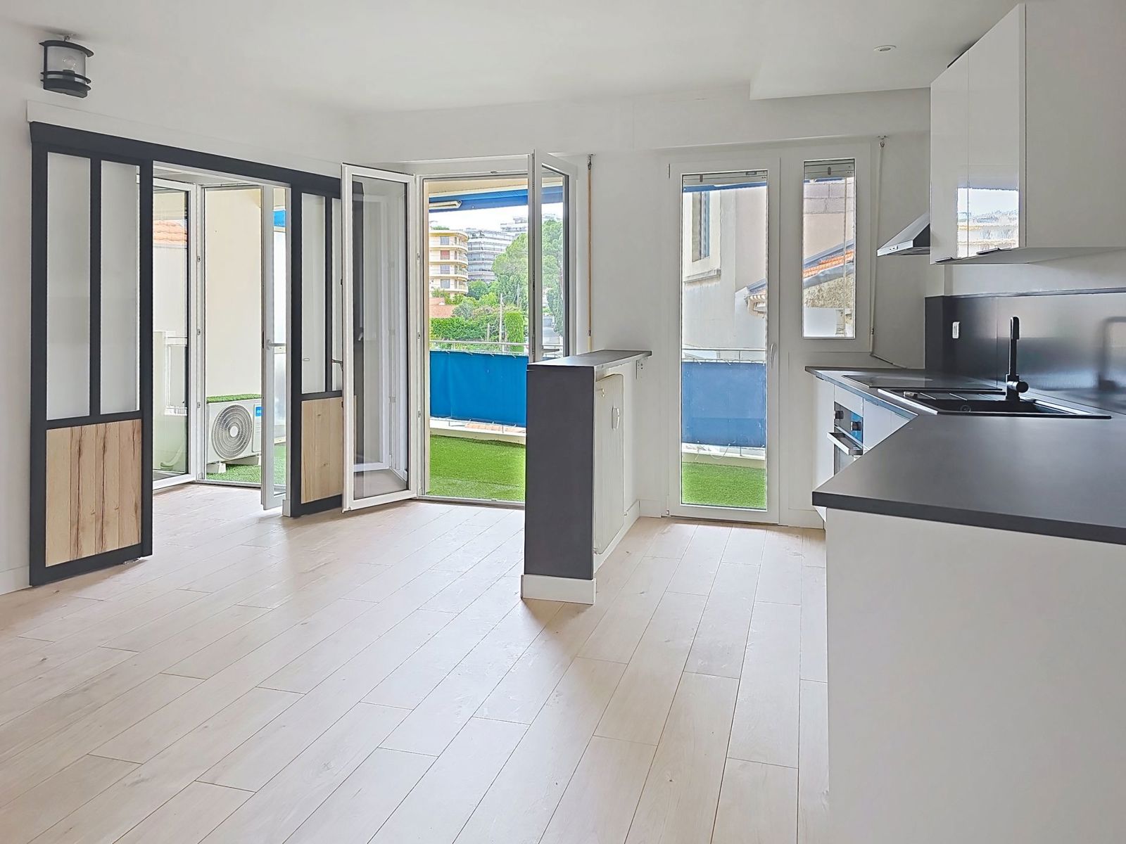 Juan-les-Pins : 2 pièces rénové avec terrasse, à pied des plages Découvrez ce charmant appartement de 2 pièces entièrement rénové, au calme, tout en étant à proximité immédiate des commerces, transports et des plages accessibles à pied en moins de 5 minutes. Situé au 3e étage d’une résidence sécurisée avec gardien, cet appartement lumineux de 42 m² se compose d’une entrée, d’un séjour lumineux avec cuisine ouverte équipée, d’une chambre confortable, d’une salle d’eau moderne avec WC séparés, et d’une agréable terrasse profonde de 14 m² exposée au calme. L’appartement est climatisé et prêt à emménager, sans aucun travaux à prévoir. Possibilité d’acquérir une place de parking en supplément (20 000 €). Cet appartement convient parfaitement pour une résidence principale, un pied-à-terre ou un investissement locatif de qualité grâce à sa situation stratégique entre Antibes et Juan-les-Pins. Les informations sur les risques auxquels ce bien est exposé sont disponibles sur le site Géorisques : www.georisques.gouv.fr. Contactez votre agence immobilière KW HLC pour obtenir de plus amples renseignements sur cet appartement à vendre à ANTIBES.