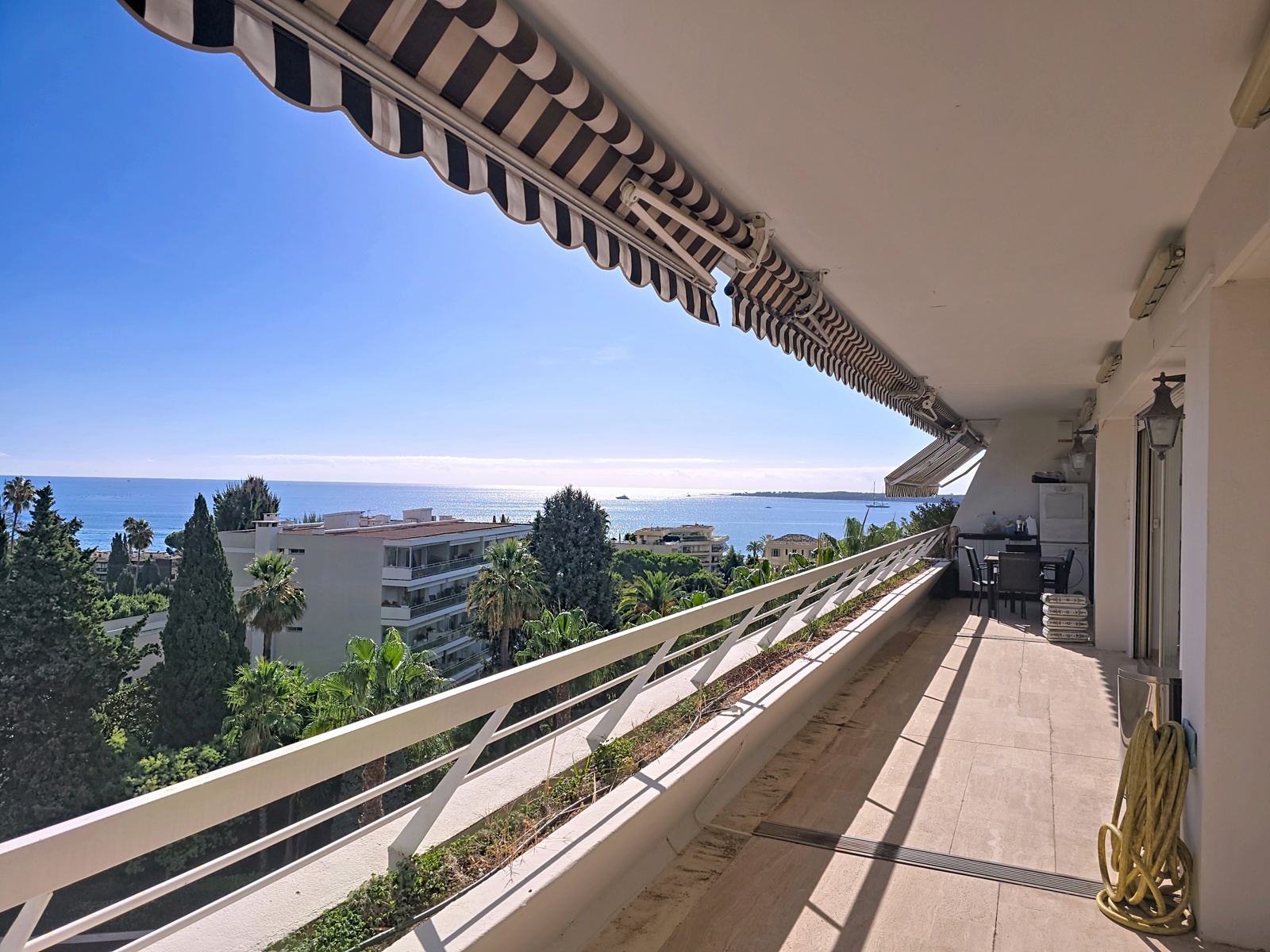 Cannes Basse Californie. Appartement de prestige avec vue mer panoramique A quelques minutes à pied des plages et à proximité immédiate de toutes les commodités. Au sein d'une résidence sécurisée de grand standing .n étage élevé, cet appartement de 134m2 vous offre une vue imprenable sur la Méditerranée. Situé dans l’un des quartiers les plus prisés de Cannes, découvrez cet appartement lumineux de 134 m², niché au 6ᵉ étage d’une résidence de standing avec gardien et ascenseur. Dès l’entrée, vous serez séduit par sa pièce de vie spacieuse ouvrant sur une terrasse exceptionnelle de 45 m², offrant une vue mer à couper le souffle — un véritable lieu de détente pour profiter du climat azuréen. L’appartement se compose d’un vaste séjour-salle à manger, de trois chambres, deux salles de bain, et deux cuisines, offrant la possibilité d’aménager l’espace selon vos envies ou de créer un espace indépendant. Quelques travaux de rafraîchissement permettront de sublimer son fort potentiel et d’en faire un bien d’exception. Les plus : Deux garages fermés Deux caves Résidence sécurisée et recherchée Vue mer panoramique