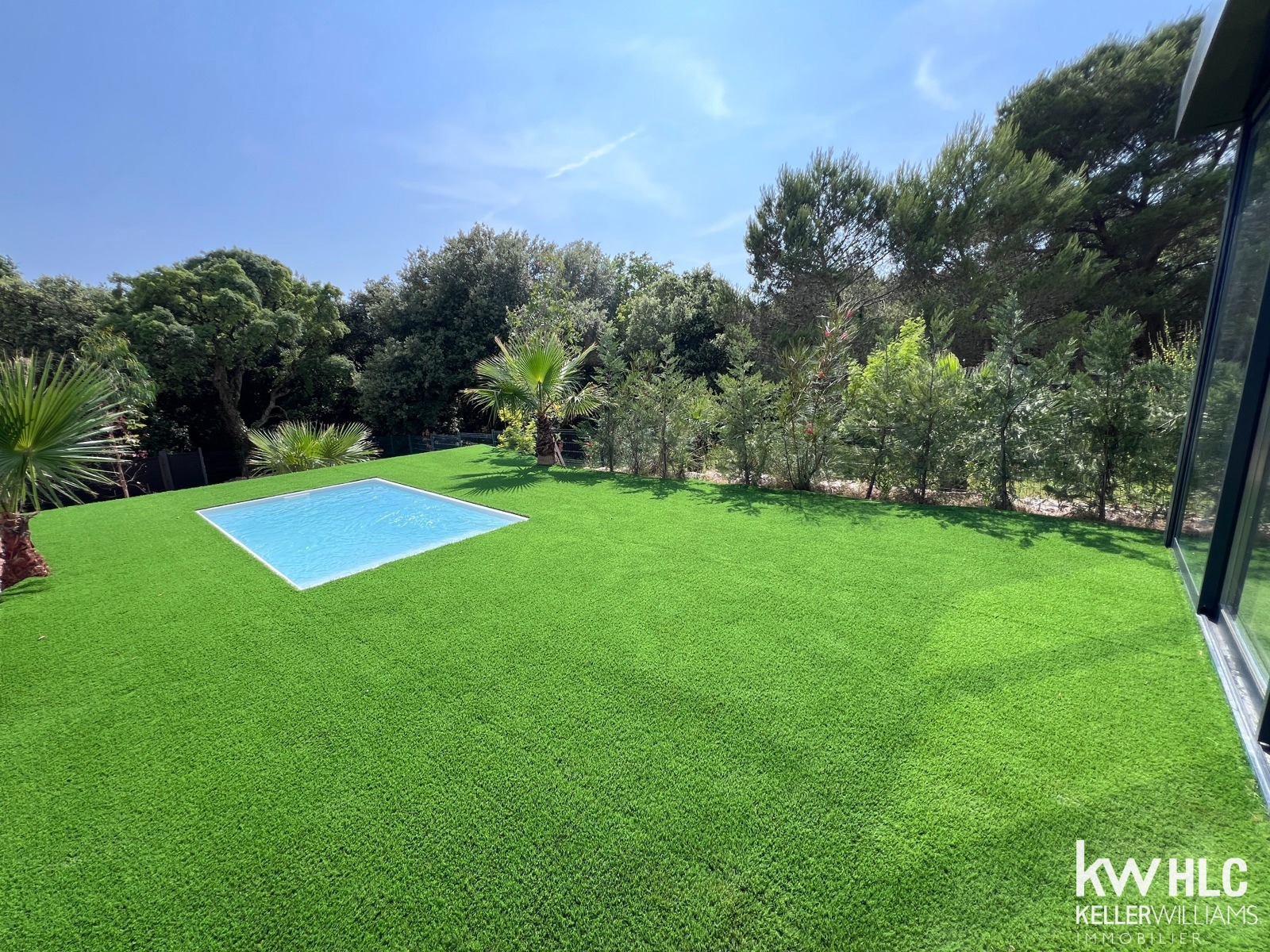 La maison dispose de prestations de qualité : climatisation réversible, chauffe-eau thermodynamique, double vitrage, buanderie…