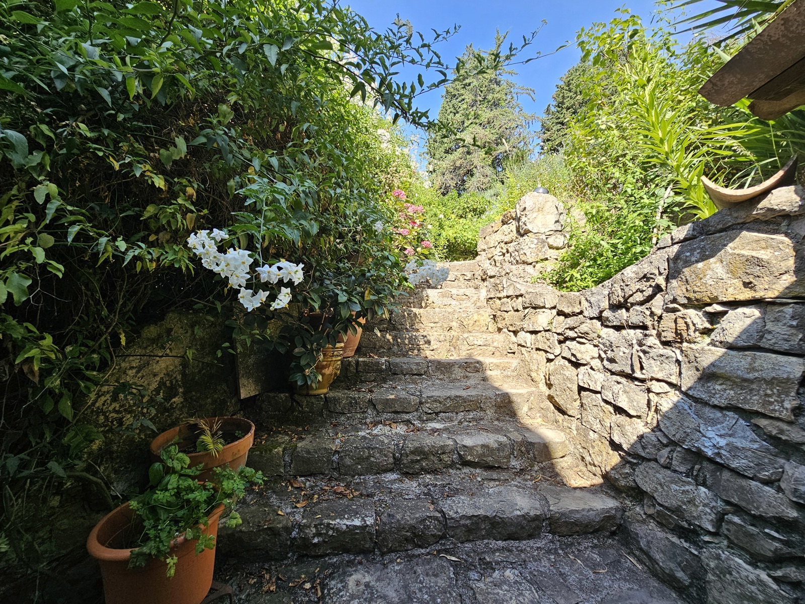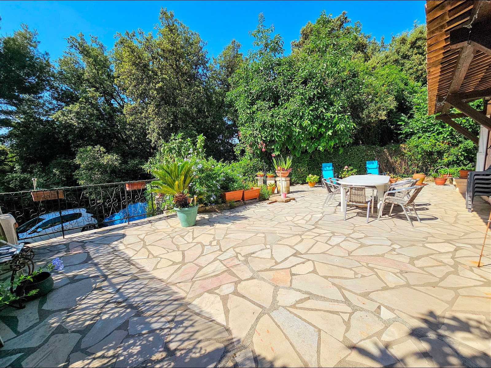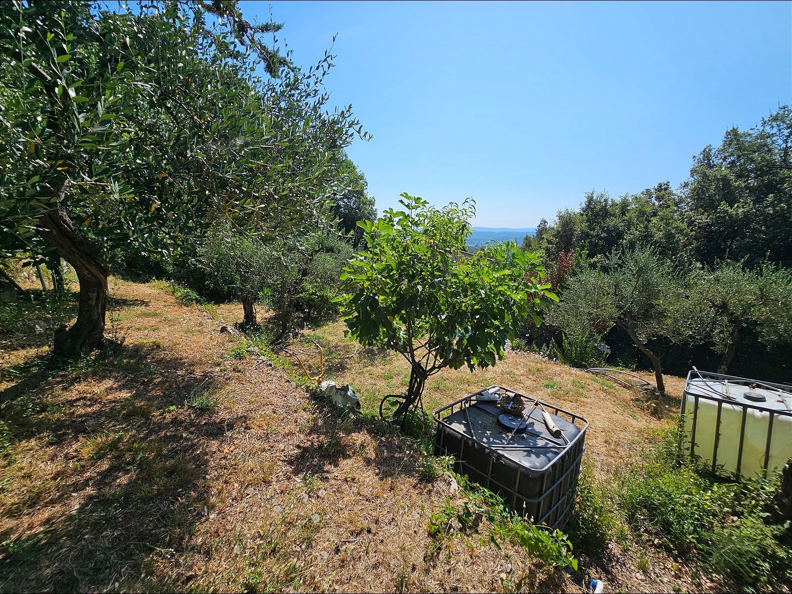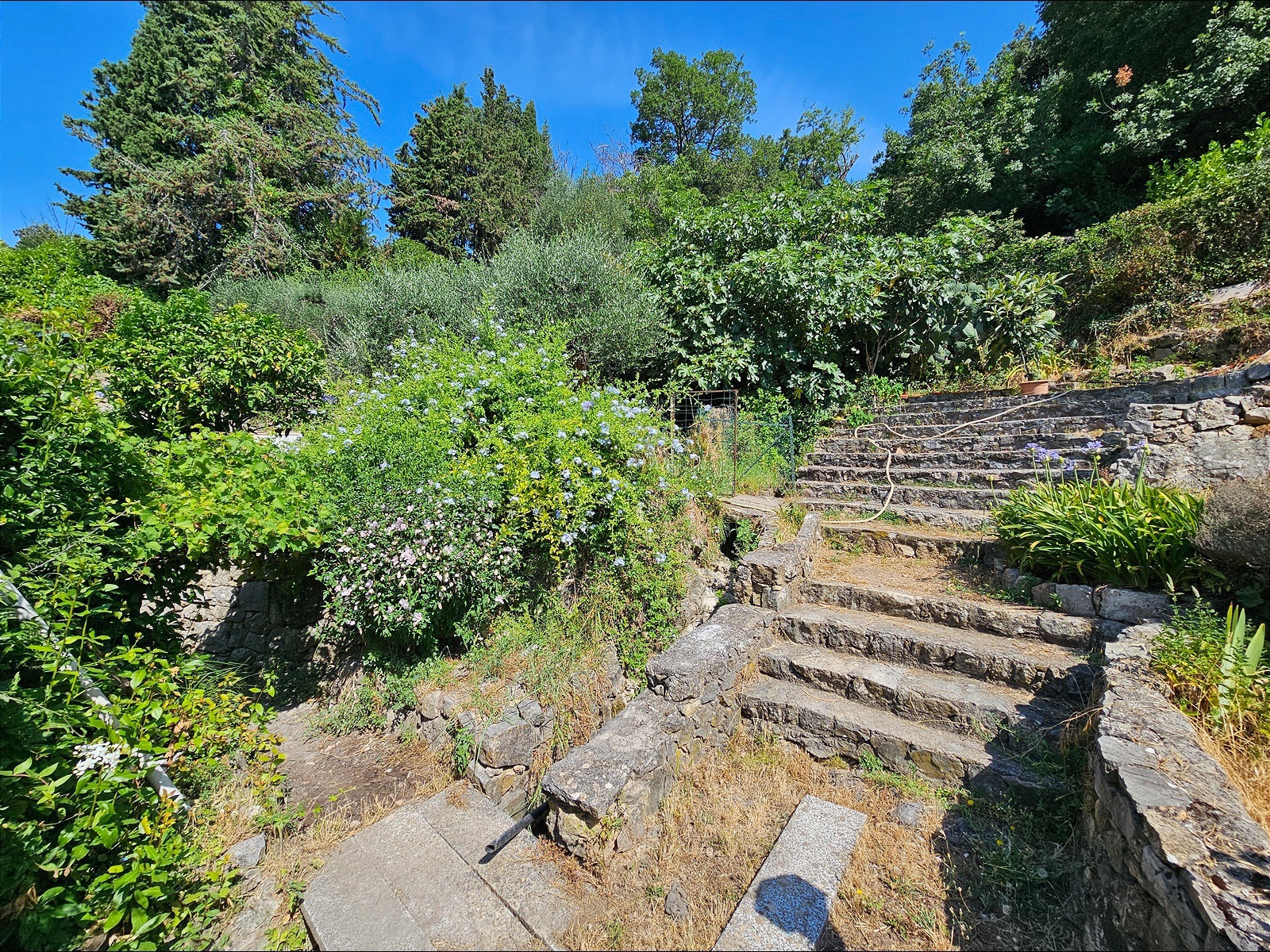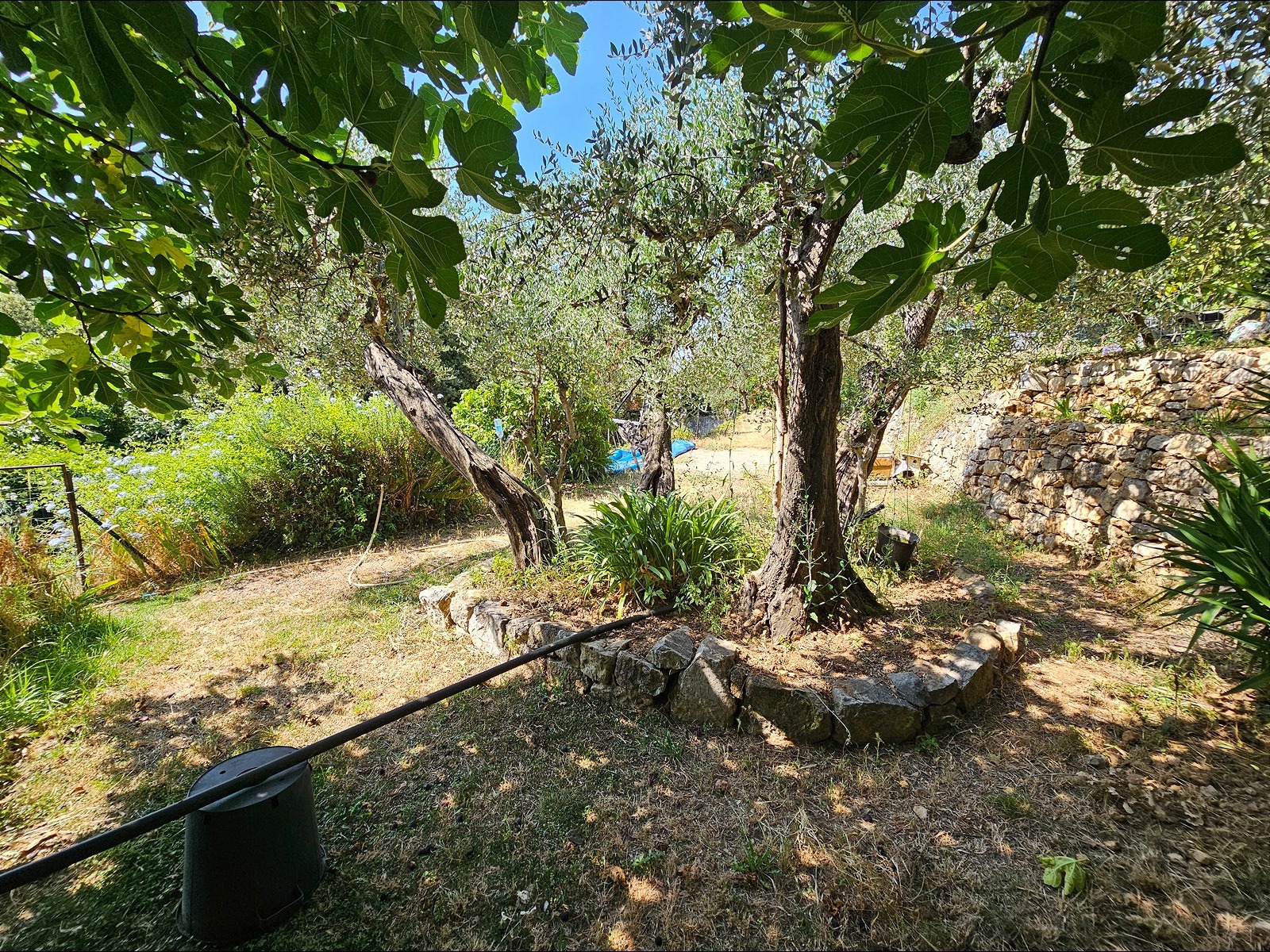 Le terrain de 1 357 m², situé à l’arrière de la maison, se déploie en plusieurs restanques larges et bien entretenues. Une configuration typique du secteur, qui crée différents espaces faciles à vivre : coin détente, jardin, jeux, ou juste un endroit où profiter du calme et de la vue.