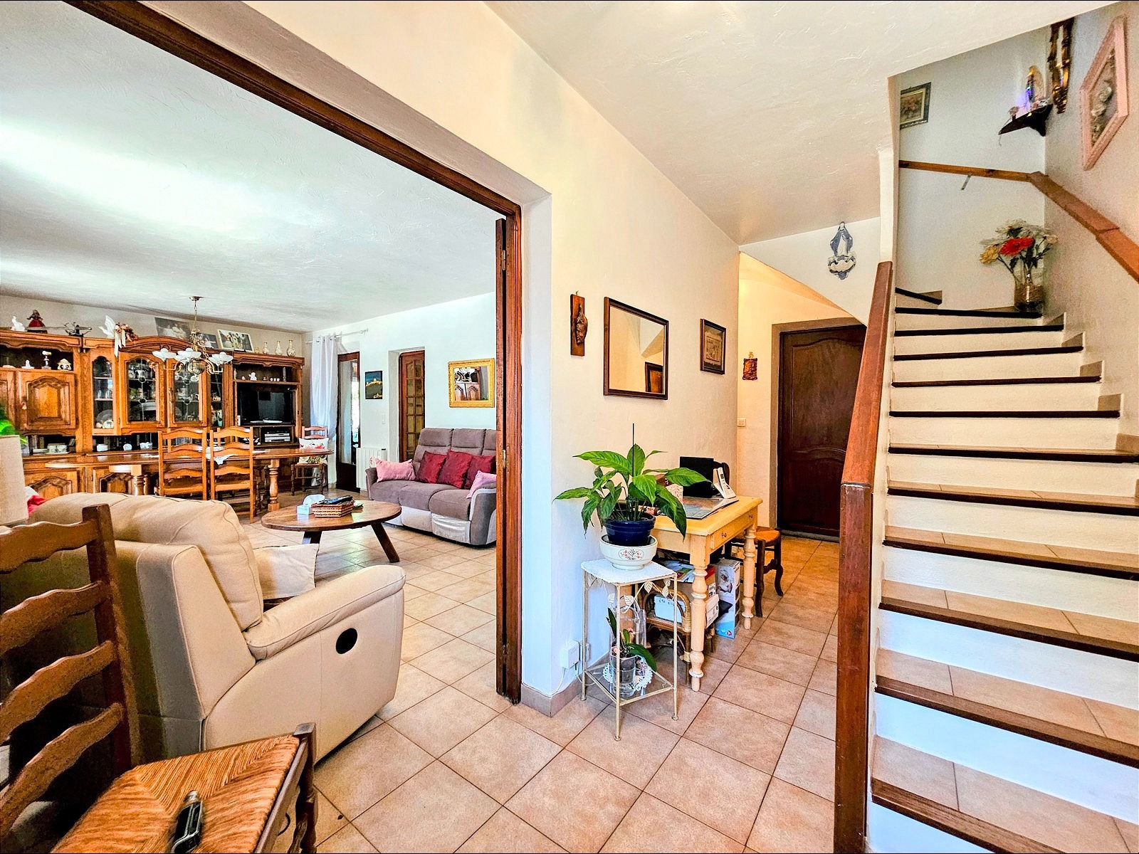 Construction traditionnelle, vide sanitaire, double vitrage, climatisation réversible, tout-à-l’égout : un bien entretenu, agréable et prêt à vivre.