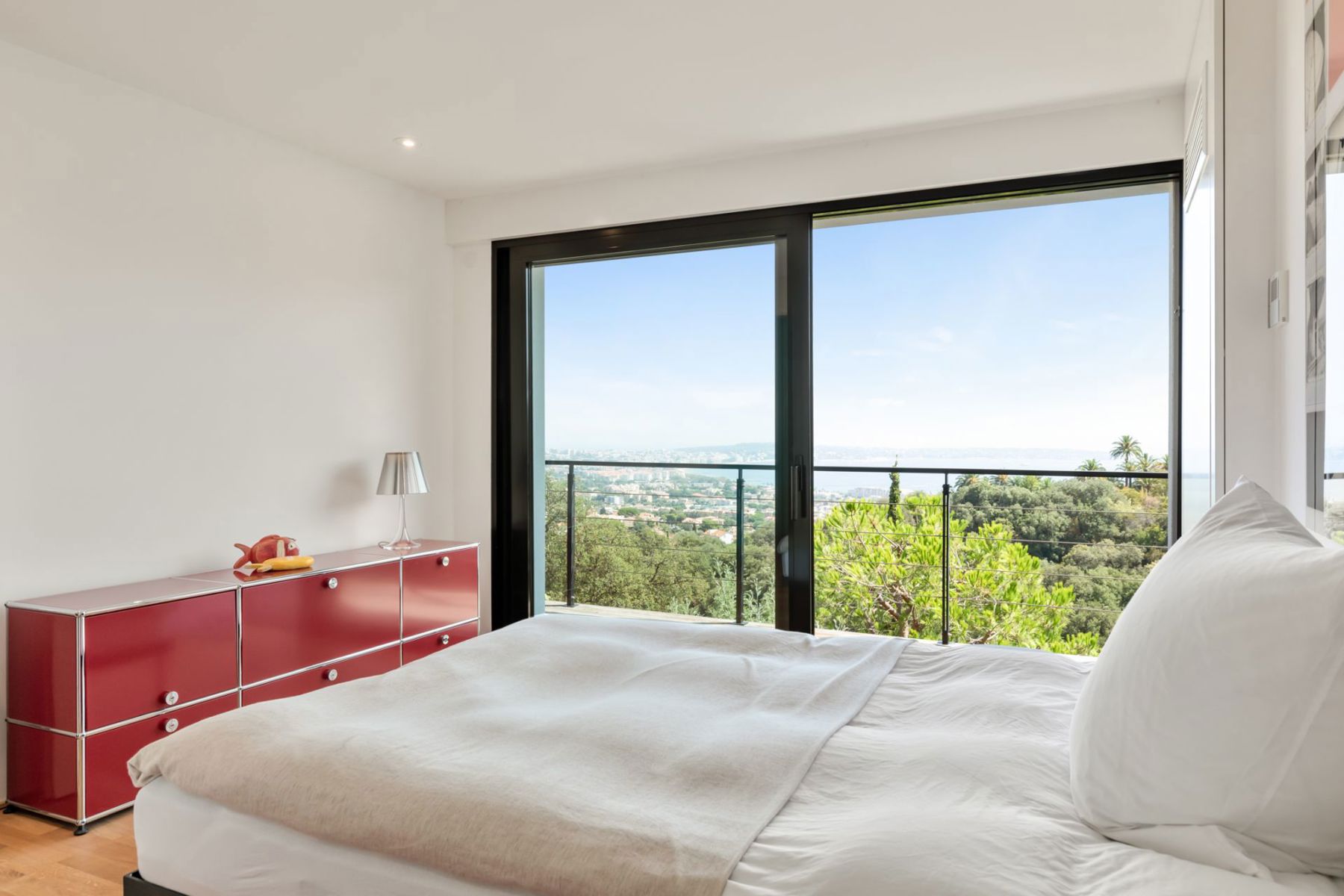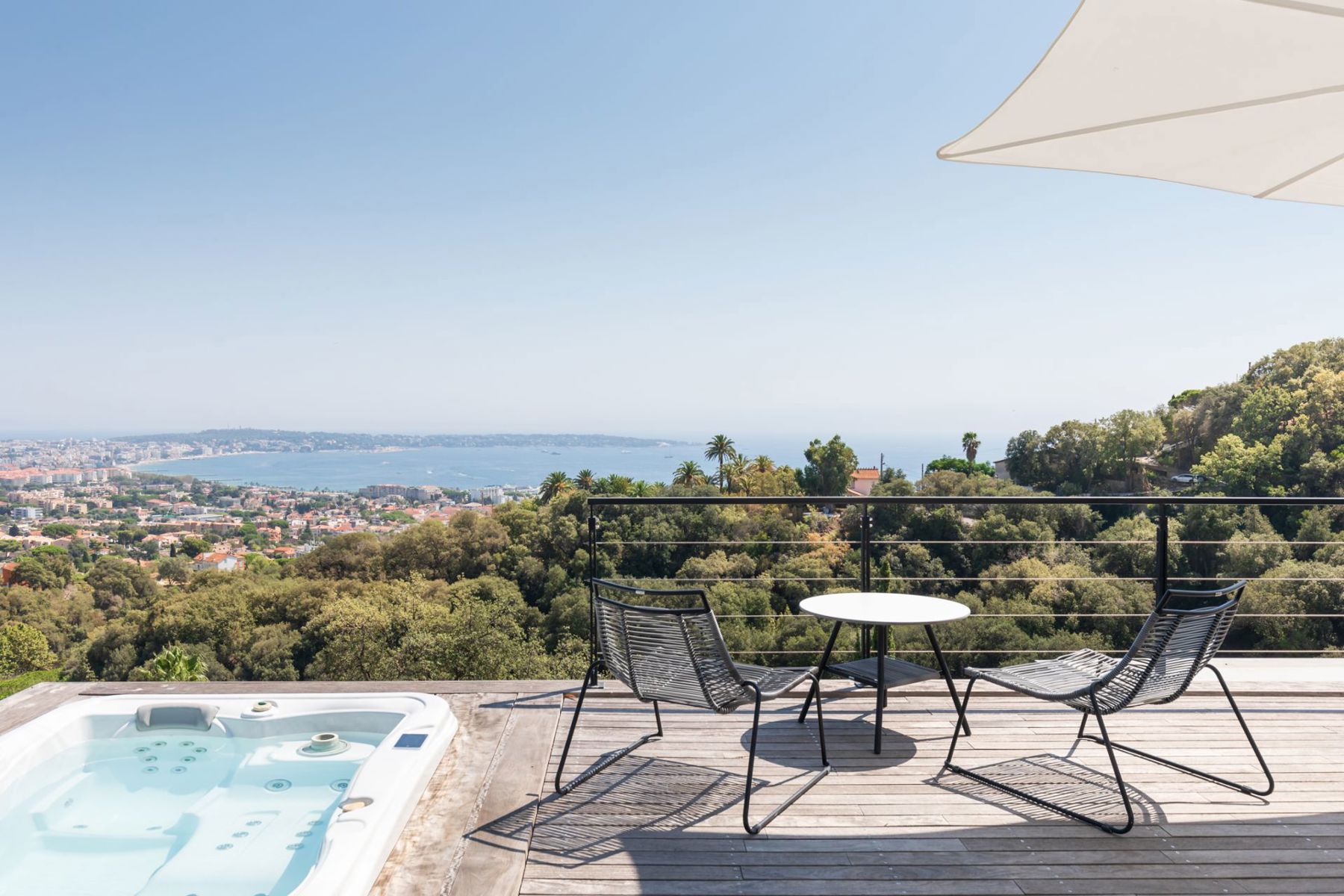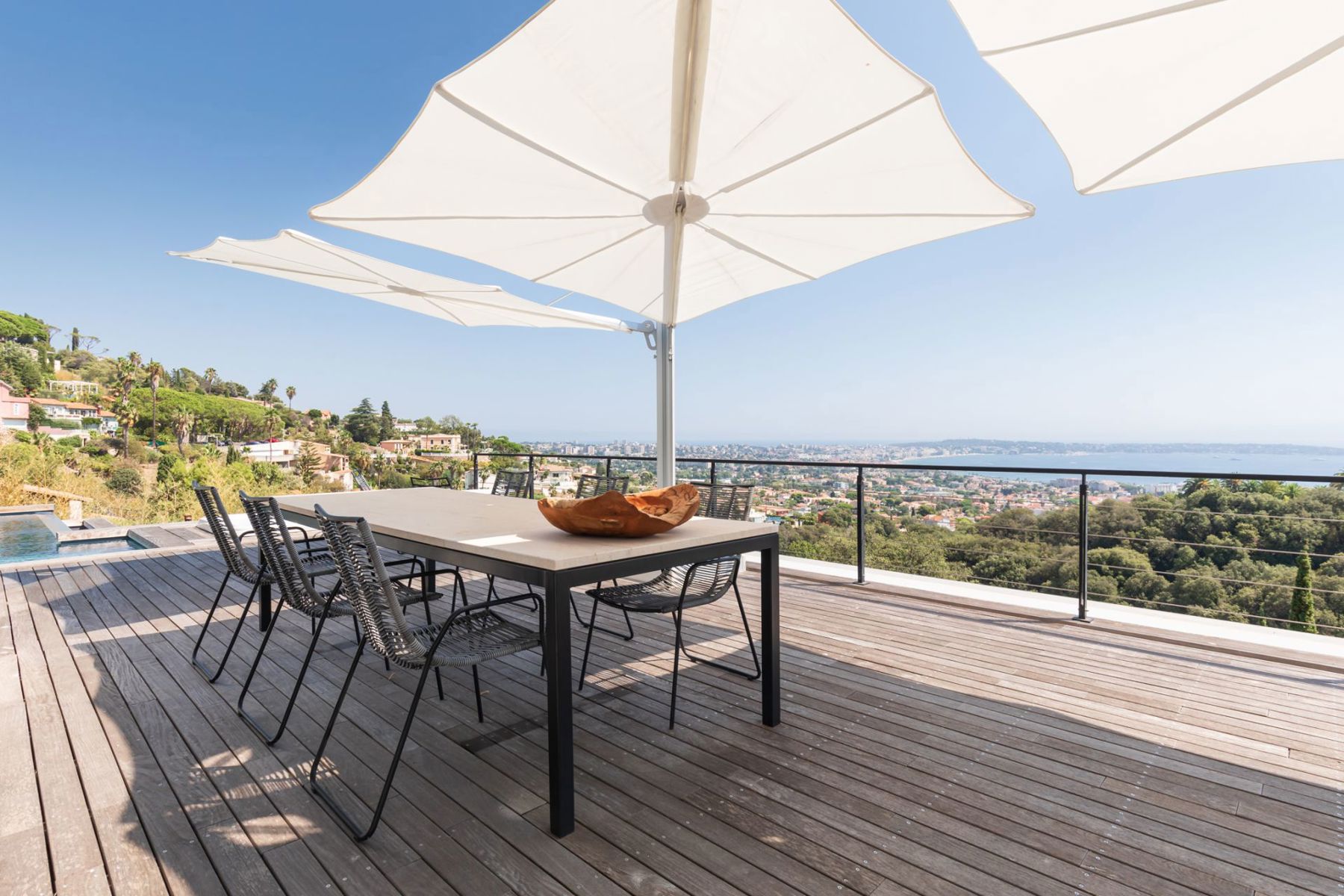 VUE MER PANORAMIQUE – MAISON D’ARCHITECTE F7 – GOLFE-JUAN 260 m² habitables – 6 chambres – Terrasses – Jardin paysager – Piscine à débordement – Ascenseur – Terrain de 1 500 m² Nichée sur les hauteurs de Golfe-Juan, à quelques minutes d’Antibes, cette propriété contemporaine d’architecte offre un cadre de vie exceptionnel avec une vue mer à 180° sur toute la baie d’Antibes. Édifiée sur 3 niveaux desservis par ascenseur, cette villa propose : Un vaste séjour baigné de lumière, ouvert sur une immense terrasse Une cuisine américaine équipée, dans le prolongement du salon 6 chambres, toutes avec vue mer, dont une suite parentale panoramique 5 salles de bains modernes À l’extérieur, vous profitez : D’une piscine à débordement et d’un SPA, tous deux avec vue imprenable D’un jardin paysager facile d’entretien De 3 grandes terrasses pour recevoir et se détendre D’un terrain arboré de 1 500 m² Côté stationnement : 6 places de parking, dont une plateforme de retournement automatique Situation idéale : À seulement 5 minutes des plages de Golfe-Juan Proche des écoles, commerces, marché hebdomadaire, restaurants Accès rapide à l’autoroute A8 et aux transports en commun Prestations haut de gamme – Emplacement recherché – Vue exceptionnelle Contactez-nous pour une visite privée. Les informations sur les risques auxquels ce bien est exposé sont disponibles sur le site Géorisques : www.georisques.gouv.fr. Contactez votre agence immobilière KW HLC pour plus de renseignements sur cette maison en vente à Golfe-Juan.