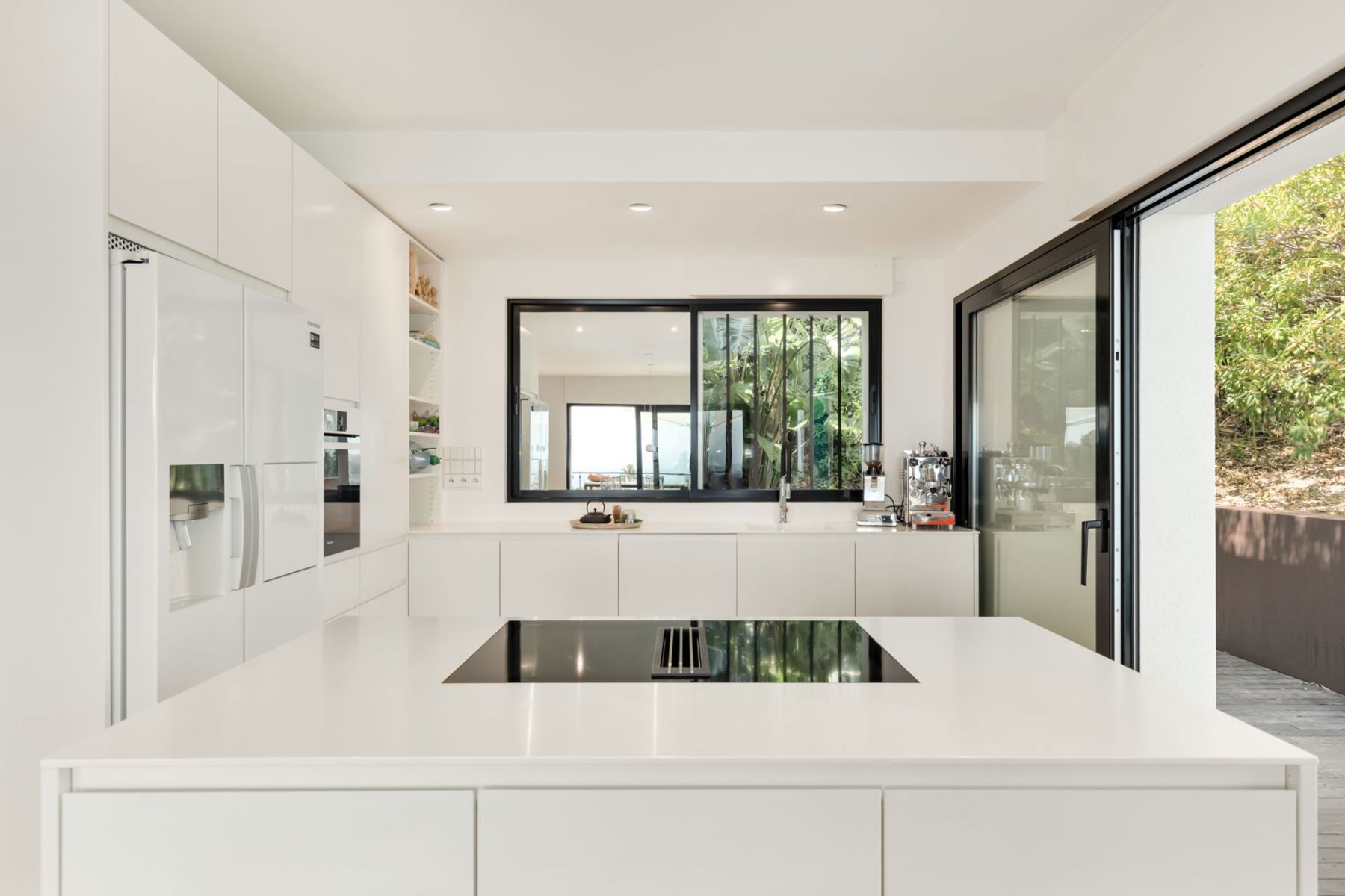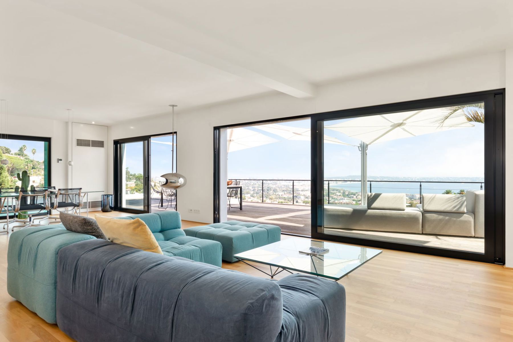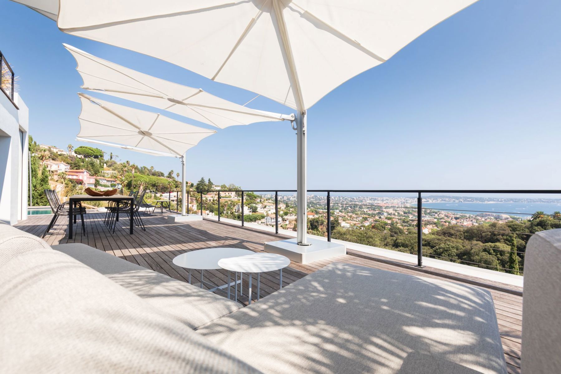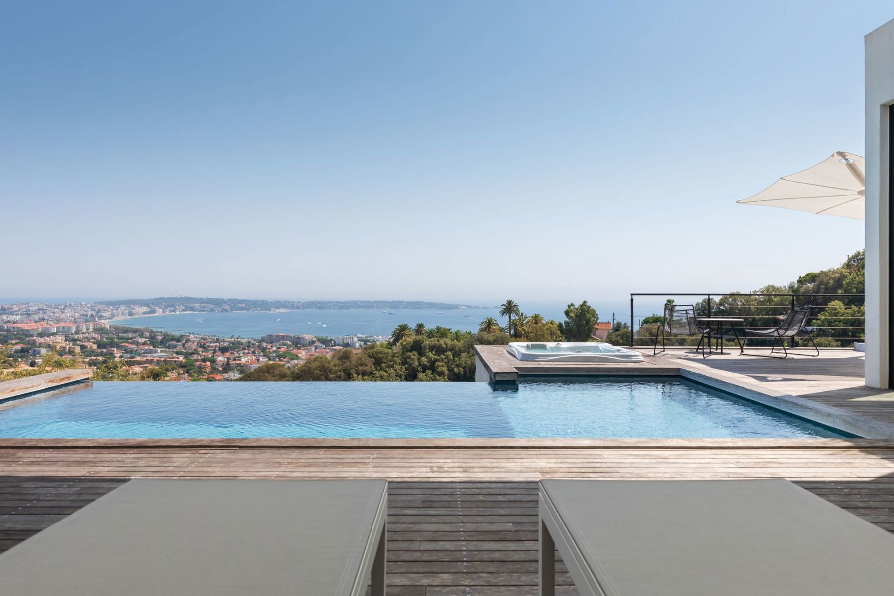 VUE MER PANORAMIQUE – MAISON D’ARCHITECTE F7 – GOLFE-JUAN 260 m² habitables – 6 chambres – Terrasses – Jardin paysager – Piscine à débordement – Ascenseur – Terrain de 1 500 m² Nichée sur les hauteurs de Golfe-Juan, à quelques minutes d’Antibes, cette propriété contemporaine d’architecte offre un cadre de vie exceptionnel avec une vue mer à 180° sur toute la baie d’Antibes. Édifiée sur 3 niveaux desservis par ascenseur, cette villa propose : Un vaste séjour baigné de lumière, ouvert sur une immense terrasse Une cuisine américaine équipée, dans le prolongement du salon 6 chambres, toutes avec vue mer, dont une suite parentale panoramique 5 salles de bains modernes À l’extérieur, vous profitez : D’une piscine à débordement et d’un SPA, tous deux avec vue imprenable D’un jardin paysager facile d’entretien De 3 grandes terrasses pour recevoir et se détendre D’un terrain arboré de 1 500 m² Côté stationnement : 6 places de parking, dont une plateforme de retournement automatique Situation idéale : À seulement 5 minutes des plages de Golfe-Juan Proche des écoles, commerces, marché hebdomadaire, restaurants Accès rapide à l’autoroute A8 et aux transports en commun Prestations haut de gamme – Emplacement recherché – Vue exceptionnelle Contactez-nous pour une visite privée. Les informations sur les risques auxquels ce bien est exposé sont disponibles sur le site Géorisques : www.georisques.gouv.fr. Contactez votre agence immobilière KW HLC pour plus de renseignements sur cette maison en vente à Golfe-Juan.