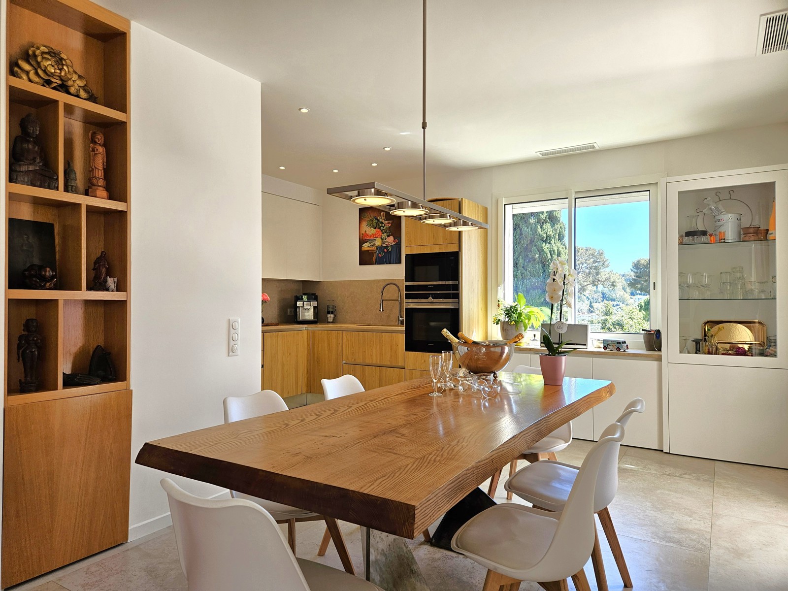 Idéalement située à seulement 10 minutes en voiture du Palais des Festivals et des plages de la Croisette, cette magnifique maison de 176 m² habitables sur un terrain de 840 m² offre un cadre de vie unique entre sérénité et proximité du centre-ville. Deux appartements indépendants pour un maximum de flexibilité ! • À l’étage (73 m²) : Un vaste séjour lumineux de 45 m² avec cuisine ouverte, une chambre avec dressing, une salle de bain avec baignoire et douche, ainsi qu’un WC indépendant. • Au rez-de-jardin (58,26 m²) : Un séjour avec cuisine ouverte, une chambre avec sa salle de bain et salle d'eau, ainsi qu’un WC indépendant. Dépendances et extérieurs : • Deux chambres indépendantes (14,99 m² et 15,56 m²) avec salle d’eau et WC privatif. • Garage transformé en buanderie. • Grande terrasse de 50 m² exposée Ouest avec stores bannes électriques à l'étage, ainsi qu'une seconde terrasse au rez de jardin. • Superbe jardin paysager avec terrain de pétanque. • Nombreuses places de stationnement. • Demande d’autorisation de piscine en cours ! Pourquoi choisir cette maison : - Emplacement idéal proche des plages et du centre. - Terrain spacieux et aménagé pour un cadre de vie agréable. - Idéal pour habitation principale, résidence secondaire ou investissement locatif. - Véritable havre de paix en plein cœur de Cannes. Contactez moi dès maintenant pour une visite exclusive !