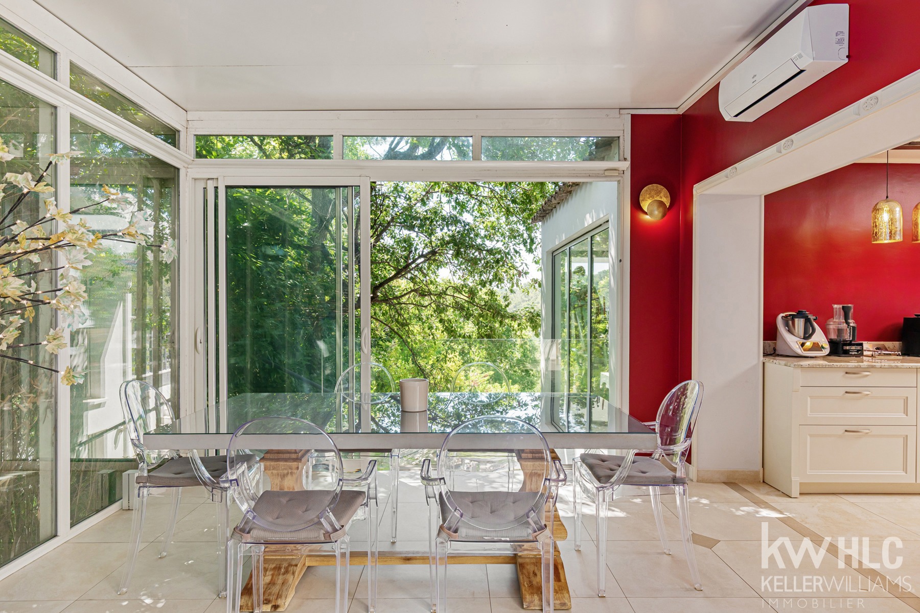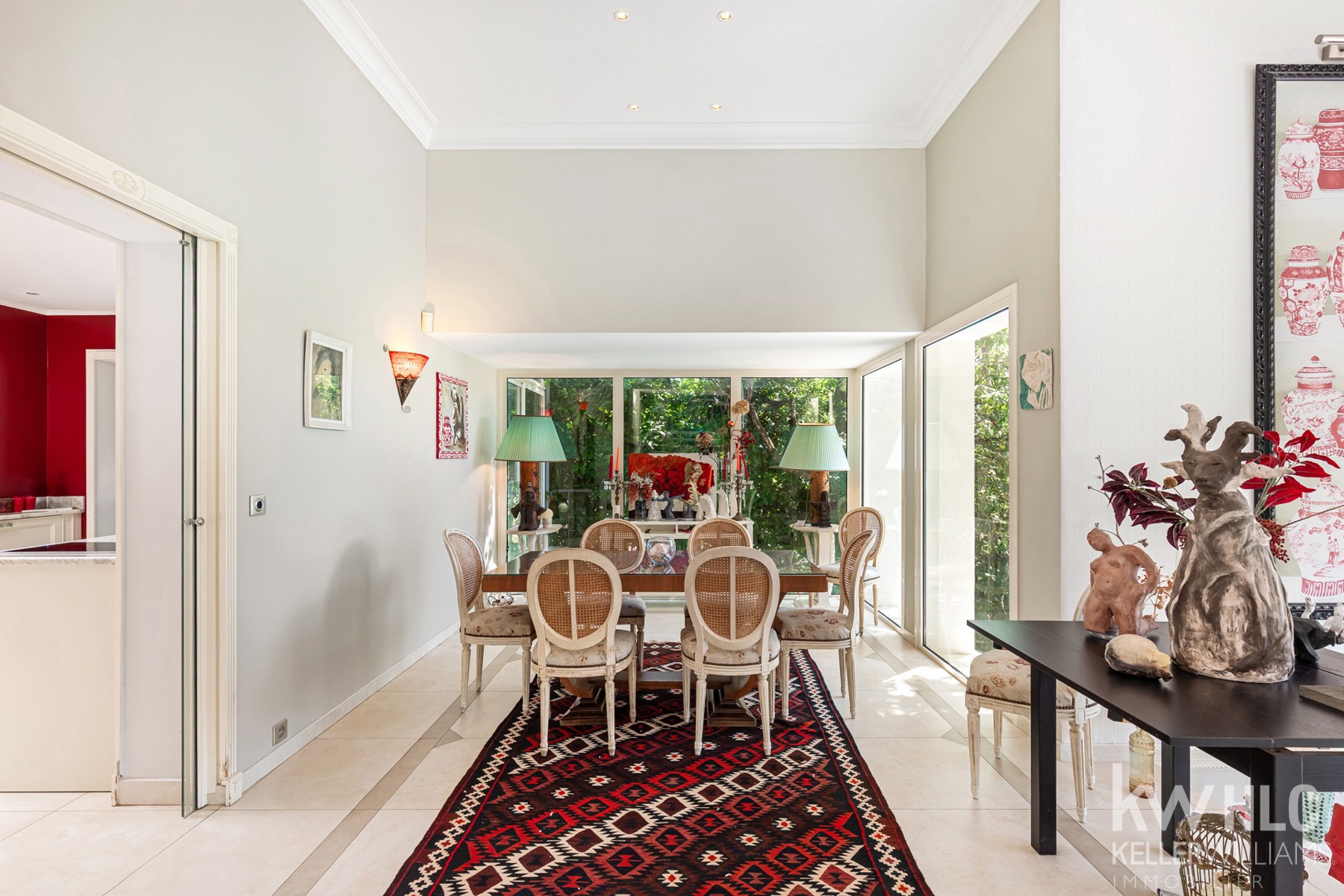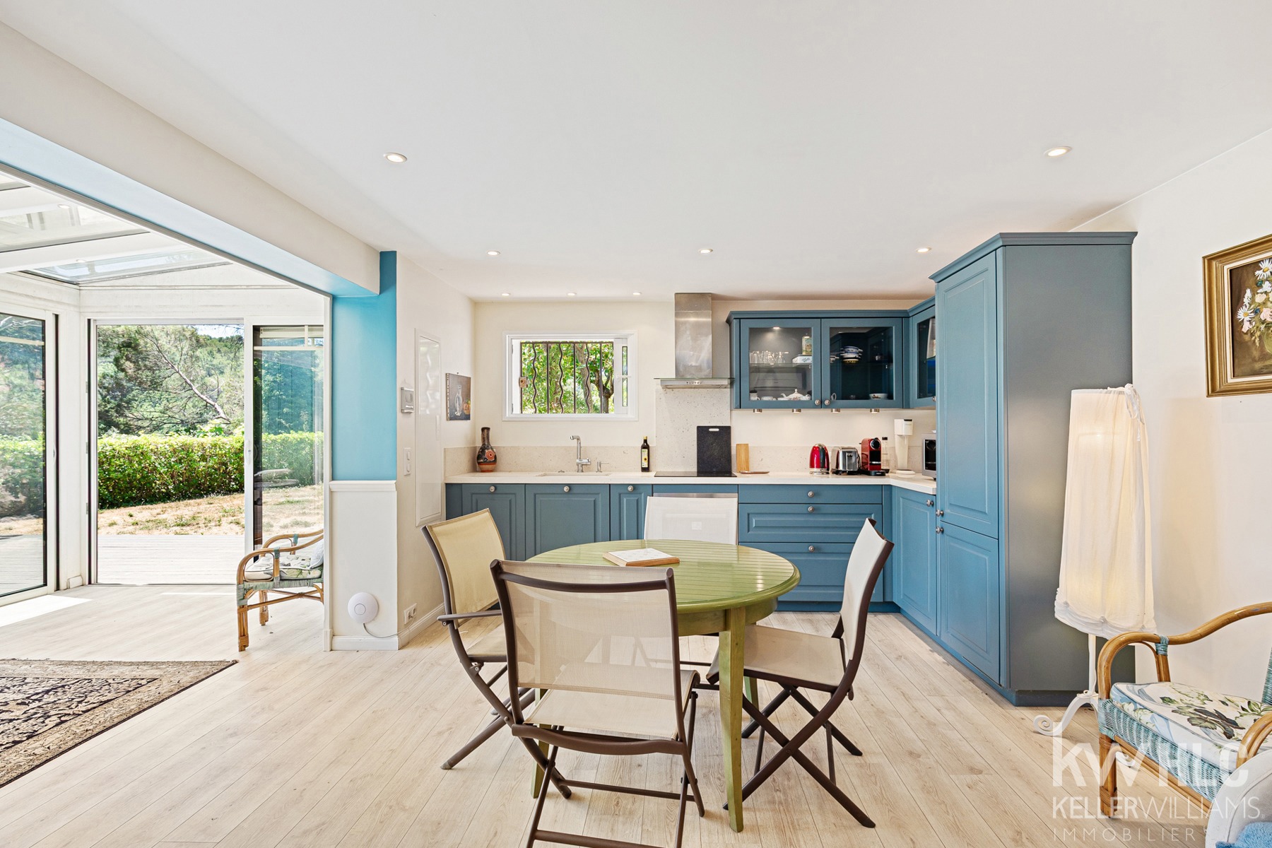 Cuisine spacieuse et entièrement équipée dispose d'une arrière cuisine et buanderie, d'une salle à manger et s’ouvre sur une terrasse exotique, parfaite pour les repas en extérieur, dans un cadre paisible et sans vis-à-vis.