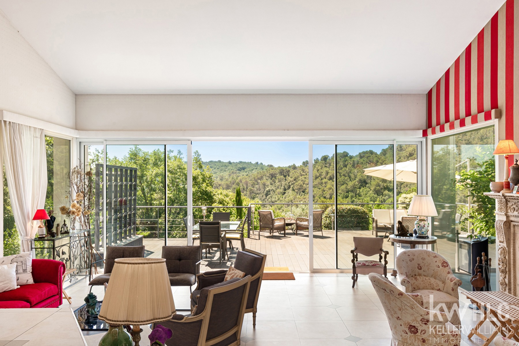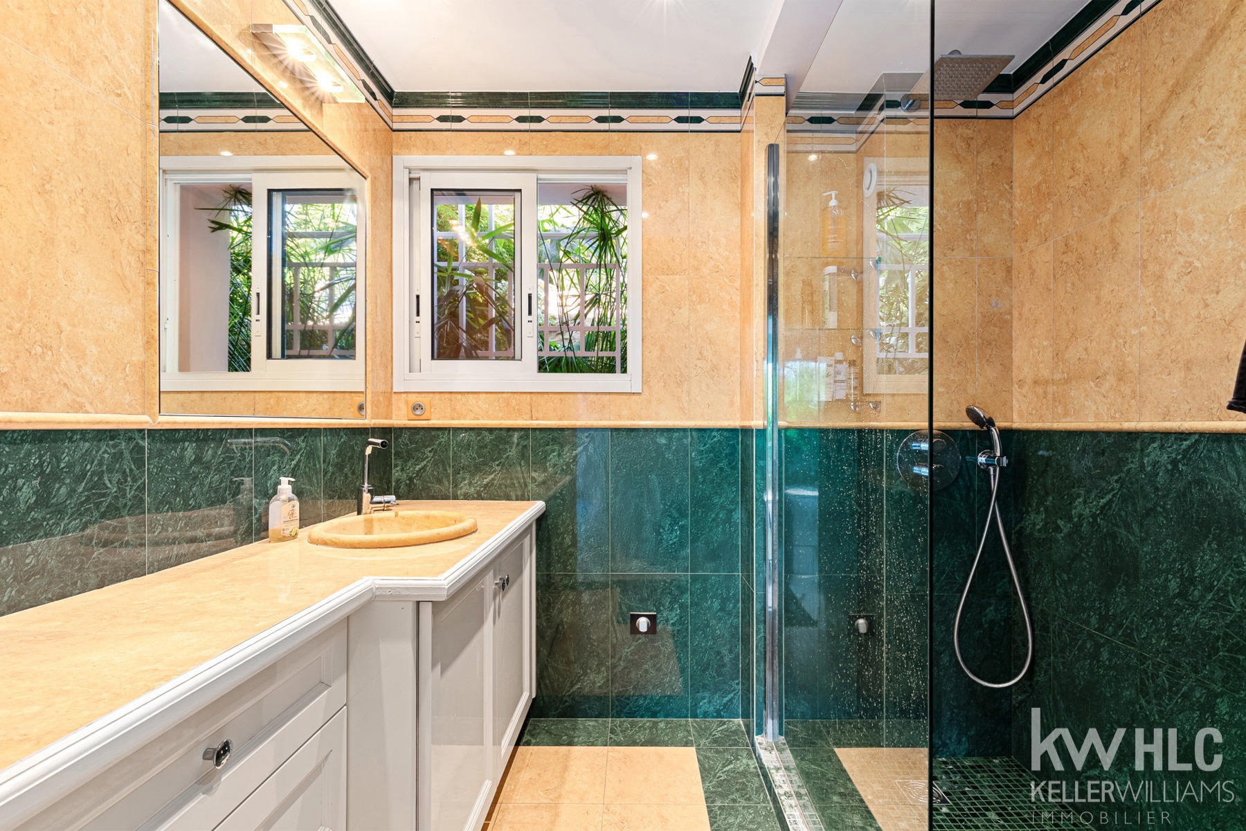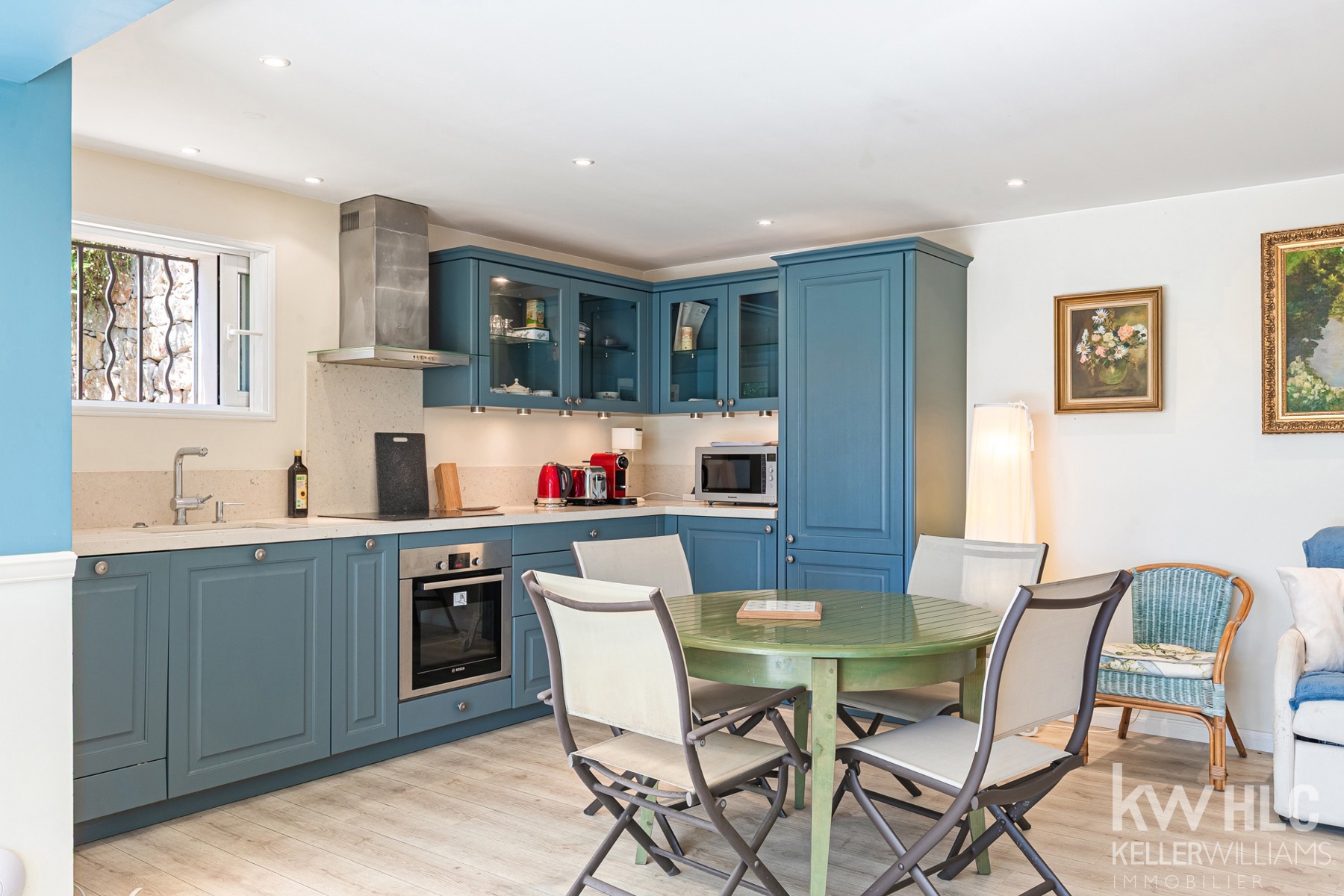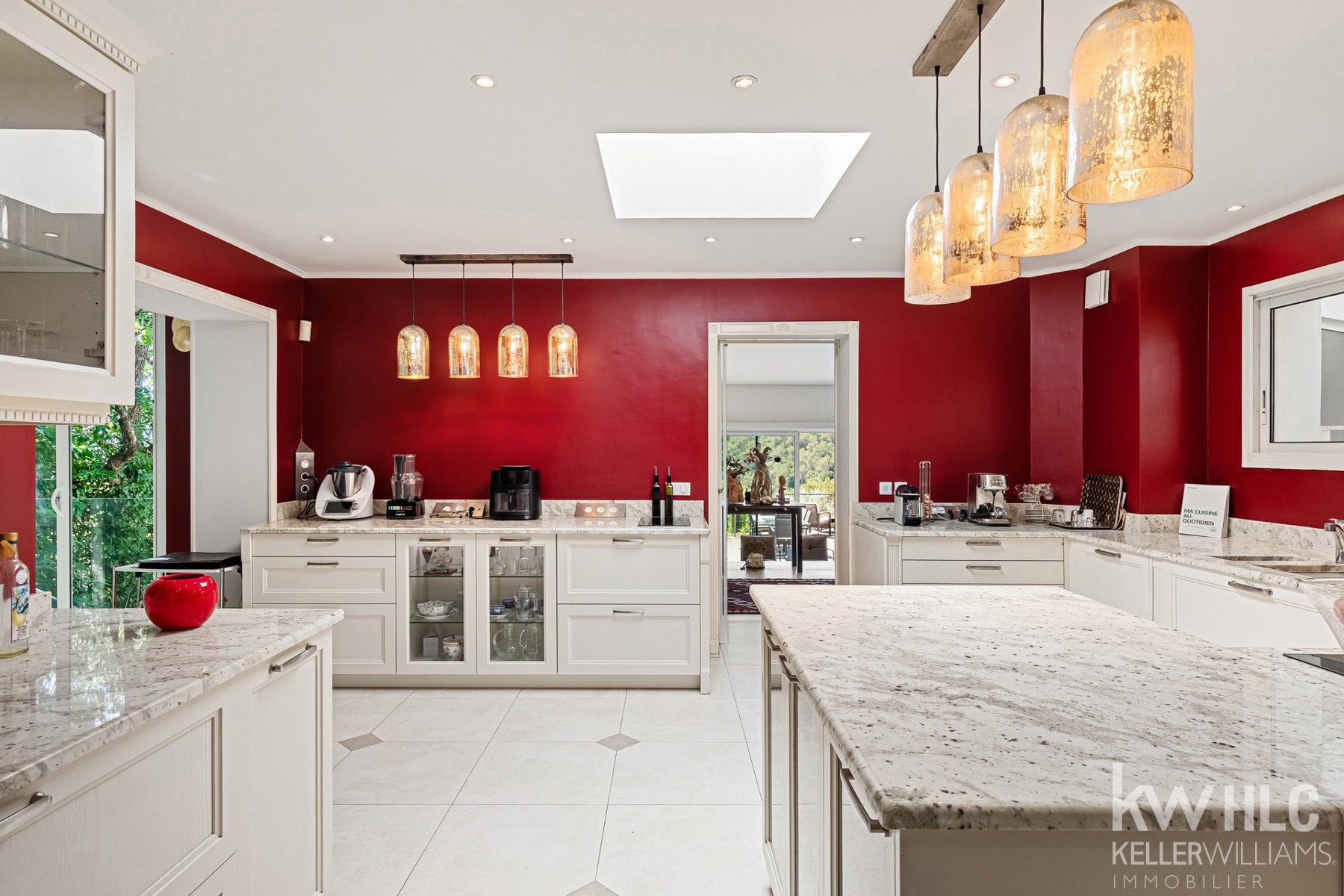 Cuisine spacieuse et entièrement équipée dispose d'une arrière cuisine et buanderie, d'une salle à manger et s’ouvre sur une terrasse exotique, parfaite pour les repas en extérieur, dans un cadre paisible et sans vis-à-vis.