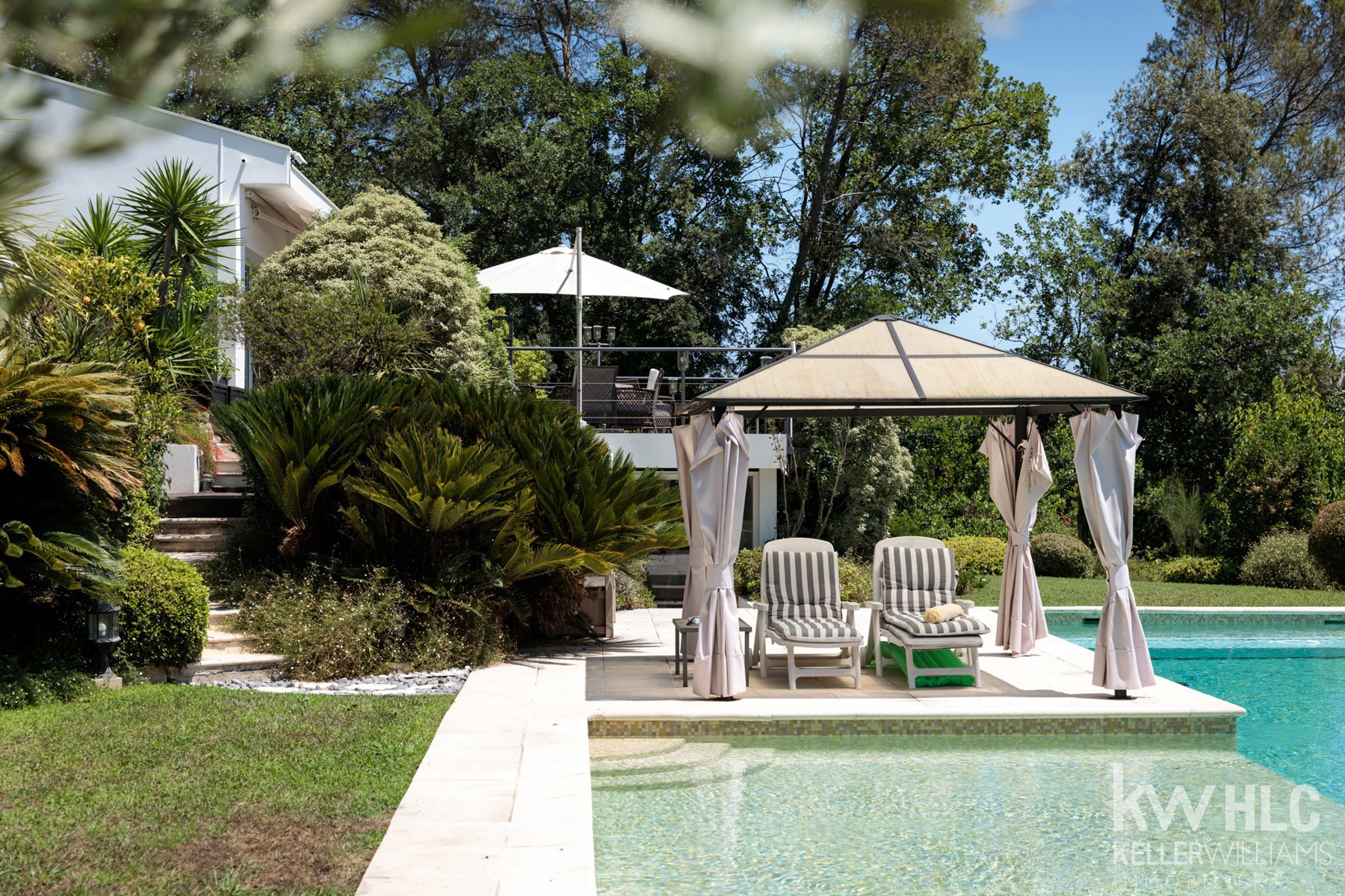 Le tout est implanté sur un terrain paysagé avec une magnifique piscine au sel chauffée et espaces de détente ombragés. Un véritable havre de paix à l’écart de toute nuisance, où chaque détail a été pensé pour allier esthétique, confort et fonctionnalité.