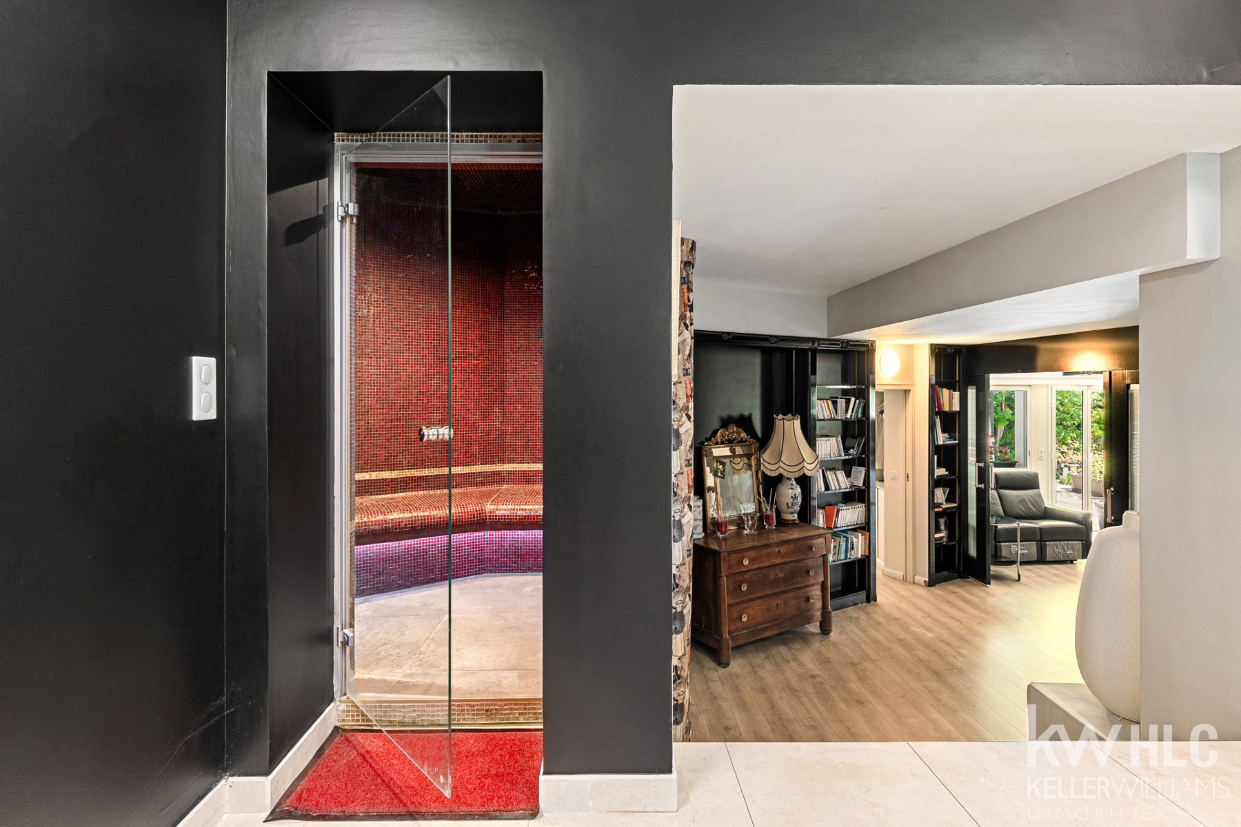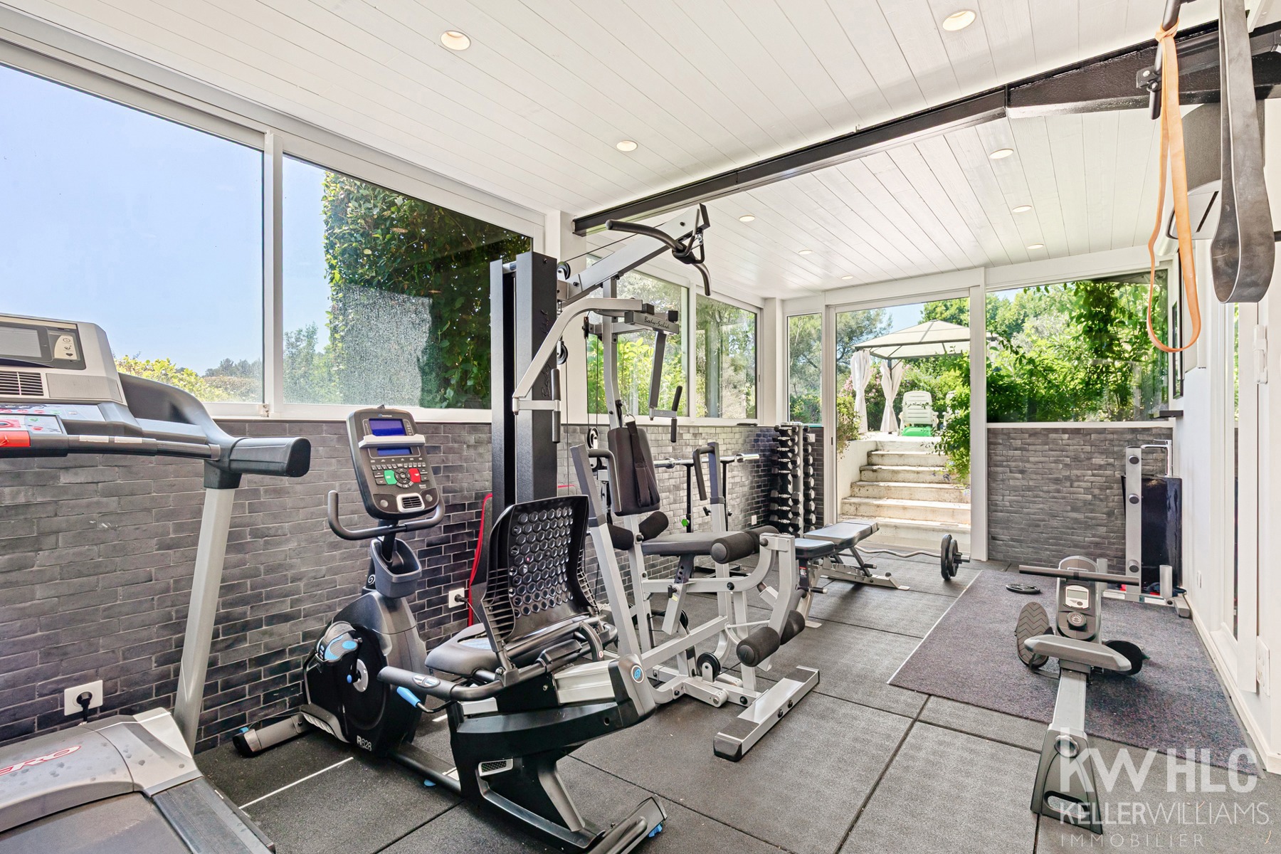 Côté bien-être, la maison propose également une salle de sport vitrée, une salle de cinéma, un hammam, ainsi qu'un sauna. Un grand sous sol aménagé avec une autre buanderie et une cave à vin le tout avec son accès sur l'extérieur. Tout ici est pensé pour le confort, la sérénité et l’élégance discrète, un bureau donnant sur jardin et une suite d'amis complètent l’ensemble.