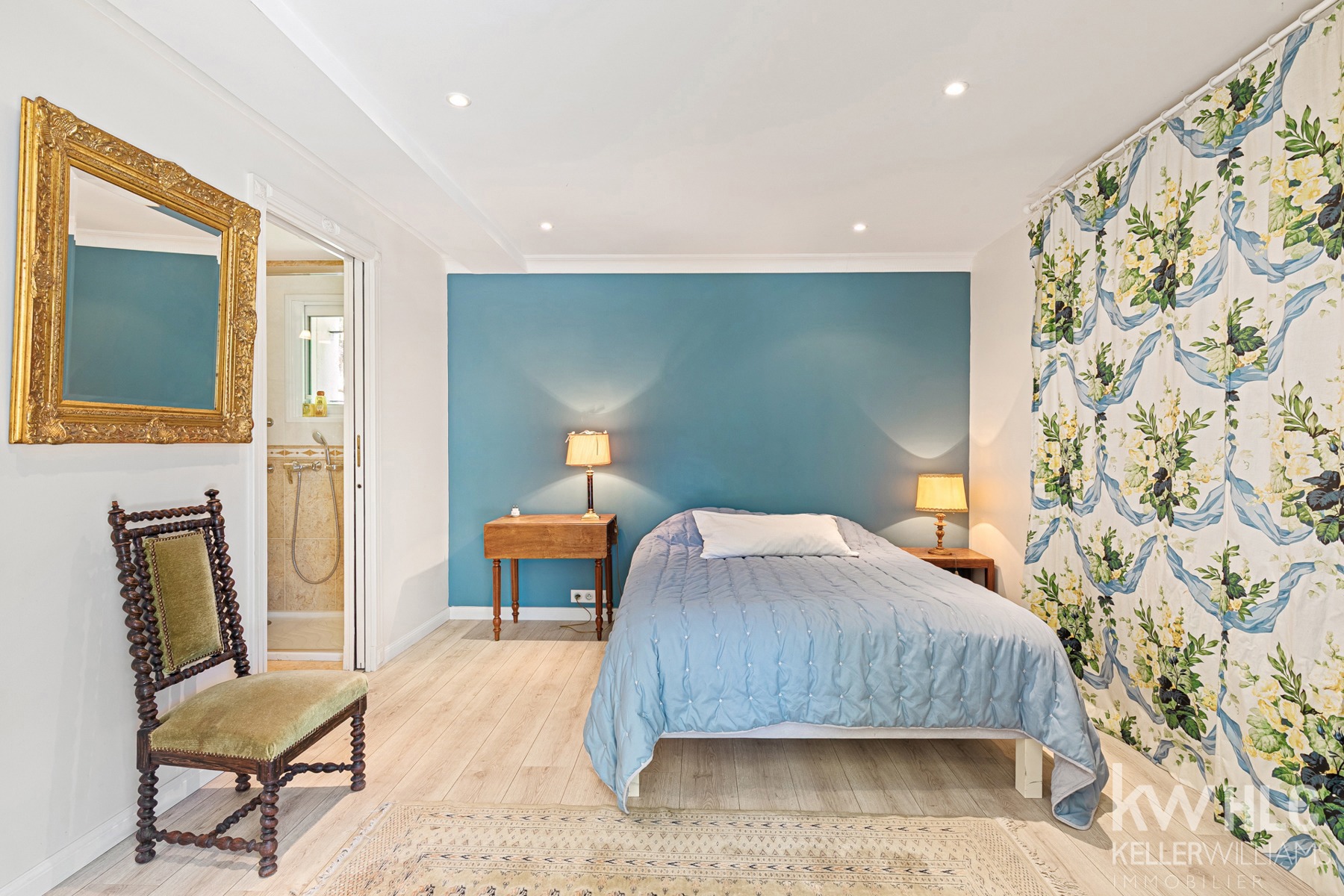 À quelques pas, la maison d’invités, indépendante et harmonieusement intégrée dans le jardin paysager, offre une atmosphère intimiste. Elle dispose d’un séjour lumineux avec cuisine, d’une belle chambre, d’une salle de bain et une buanderie. Parfaite pour accueillir amis, famille ou pour envisager une activité de type chambre d’hôtes