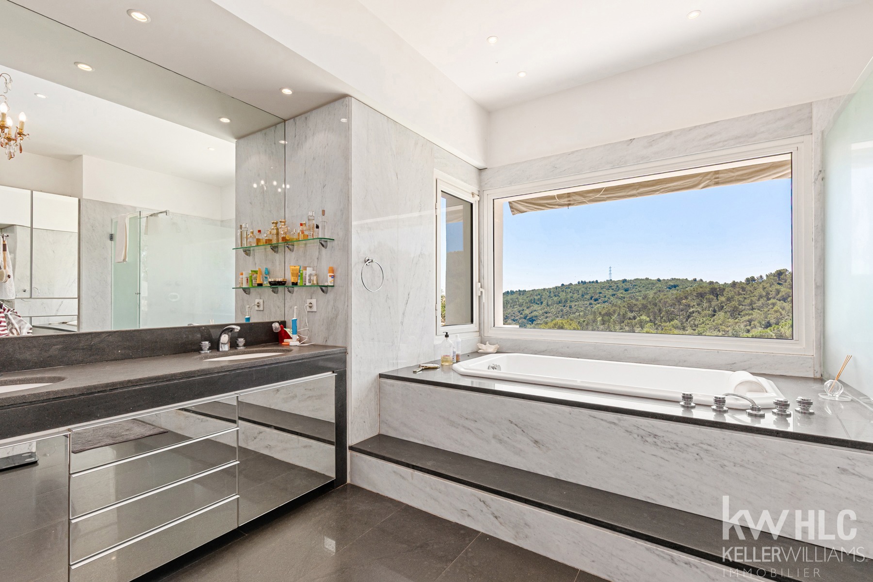 L’espace nuit, réparti intelligemment, comprend une suite parentale avec terrasse privative et son jacuzzi, un dressing sur mesure et salle de bain haut standing.