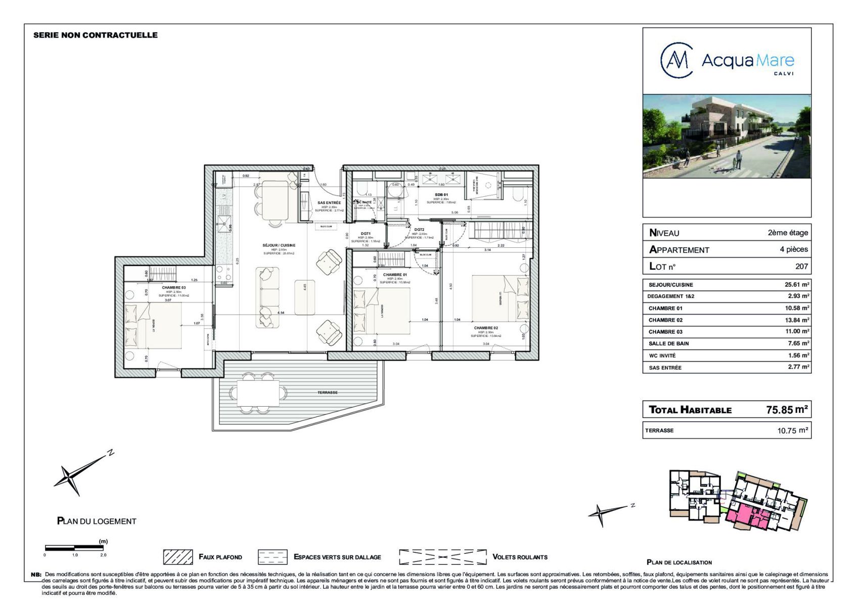 APPARTEMENT 4 PIÈCES AVEC TERRASSE En vente à CALVI (20260), nous sommes heureux de vous présenter cet appartement de 4 pièces de 75,85 m². Son intérieur comporte trois chambres et une cuisine aménagée équipée. Une terrasse ajoute à cet appartement un gain d'espace bienvenu. Il est situé au 2e et dernier étage d'un petit immeuble avec ascenseur. Il est mis en vente avec deux places de parking et deux garages. L'École Maternelle Calvi, l'École Primaire Calvi Cardellu et le Collège Jean Orabona Calvi sont implantés à moins de 10 minutes à pied. L'aéroport Calvi-St-Catherine est accessible à 5 km. Pour vos loisirs, vous pourrez compter sur un bassin de natation à quelques minutes à peine. On trouve aussi des restaurants, des commerces, trois boulangeries et une supérette. Les informations sur les risques auxquels ce bien est exposé sont disponibles sur le site Géorisques : www.georisques.gouv.fr. N'hésitez pas à prendre contact avec votre agence immobilière KW HLC EXPAND pour une première visite de cet appartement à vendre.