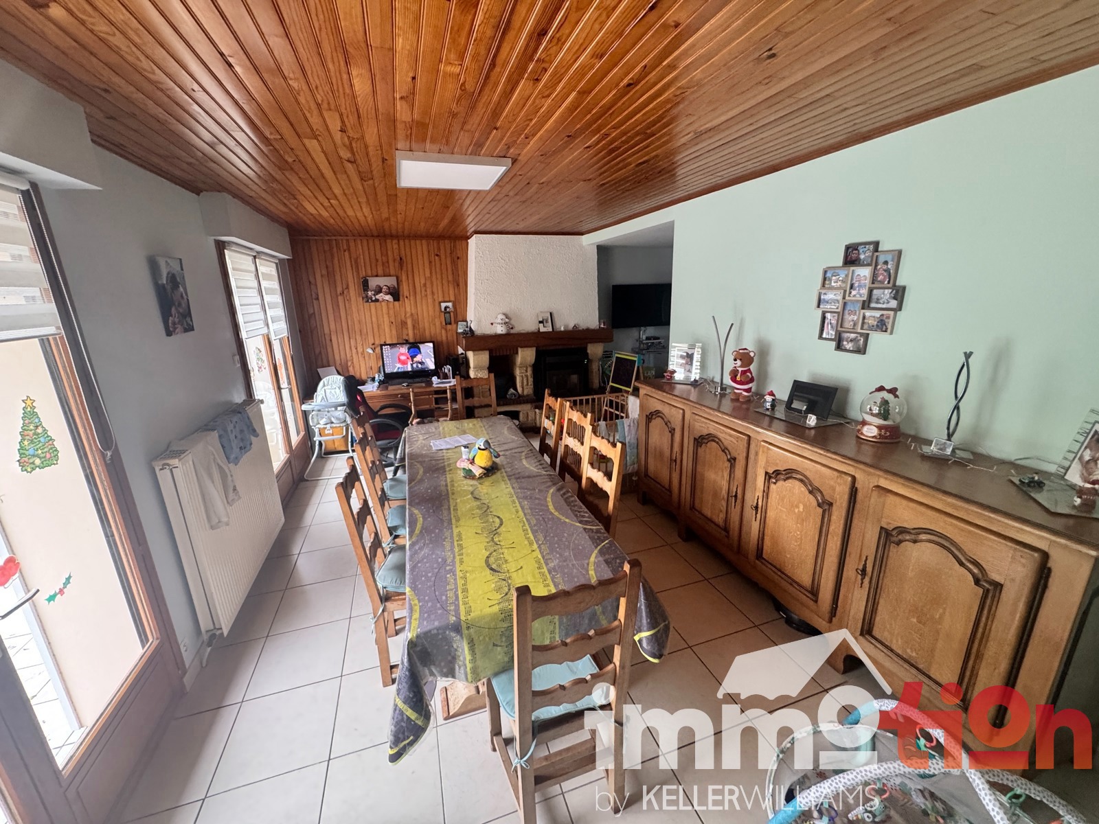 Entrée desservant un séjour chaleureux avec insert à granulés