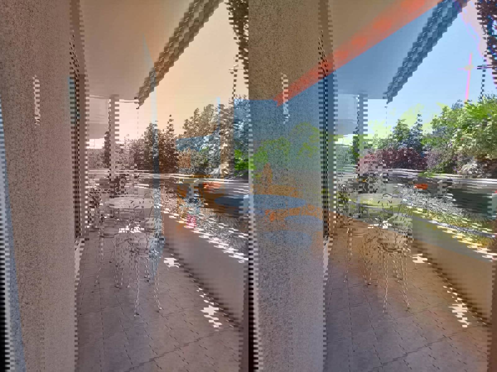 Il se compose d'une entrée, d'un salon et d'une cuisine séparée donnant sur une belle terrasse, de trois chambres, dont deux avec accès direct au balcon, d'une salle d'eau et de toilettes séparées et un cellier.