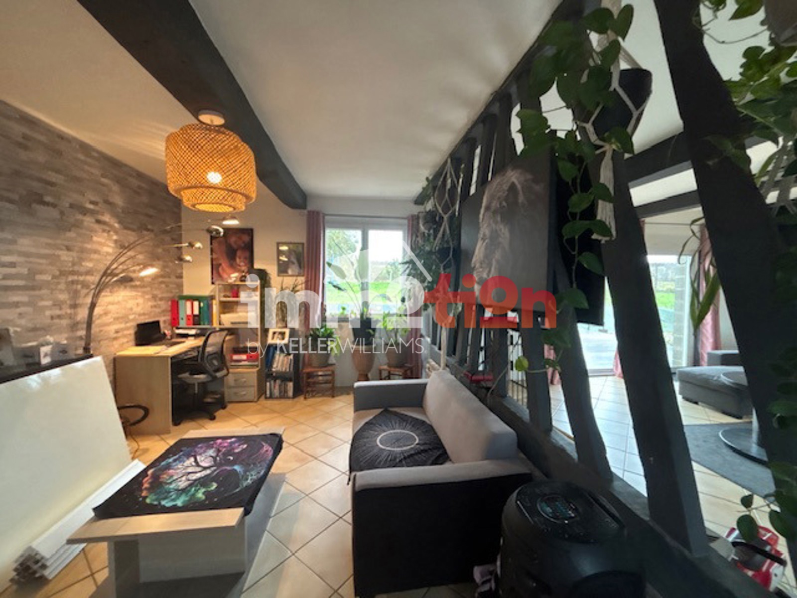 Entrée sur une pièce de vie de 65.10m² comprenant une cuisine équipée et aménagée ouverte sur de jolis espaces de vie, une chambre de 18m², une salle d'eau, un wc indépendant, un cellier et un bureau.