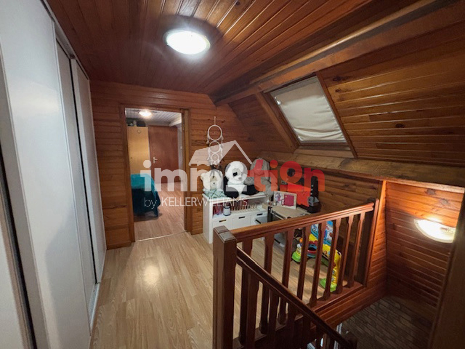 A l'étage : un palier dessert deux petites chambres et un grenier.