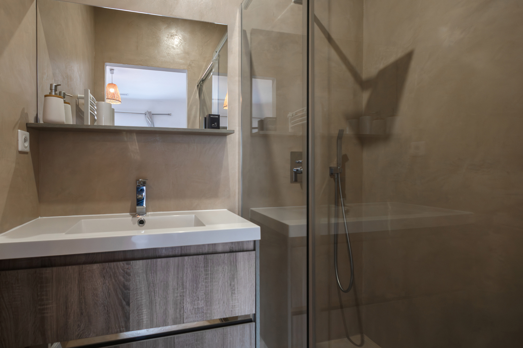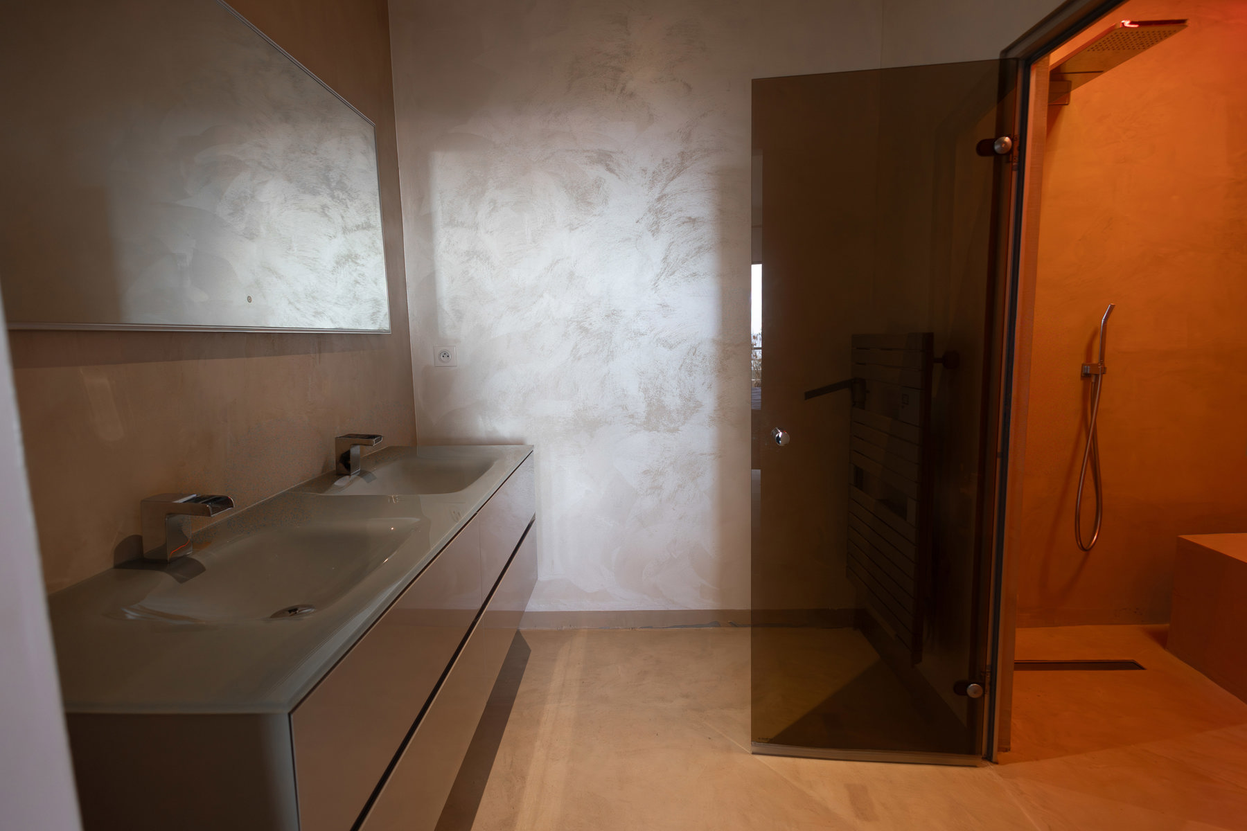 La suite principale offre un véritable espace bien-être avec sa salle de bains et son hammam.