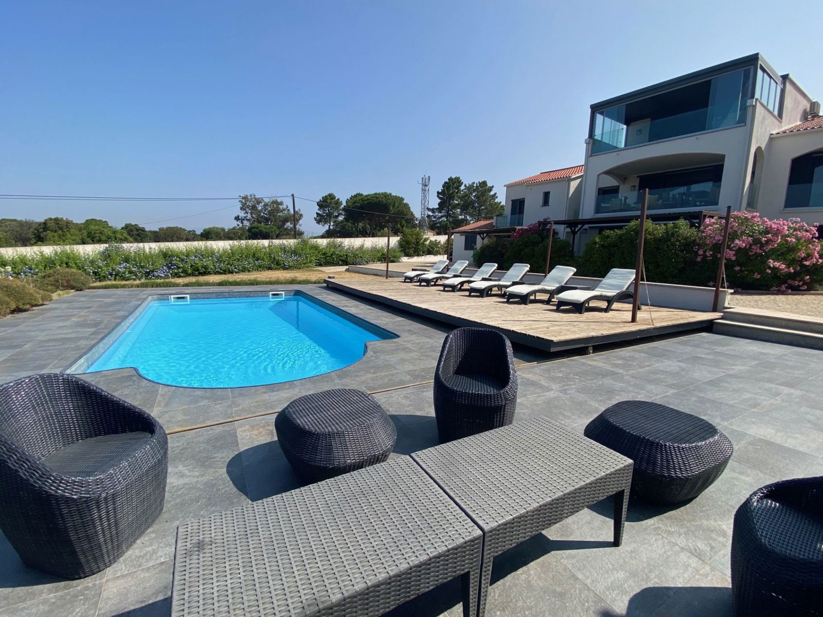 Ayez le coup de cœur à PORTICCIO (20166), cette maison de 412 m². Superbe batisse contemporaine composée de plusieurs appartements tous rénovés récemment avec gout et matériaux de qualité. Vous trouverez au rez de chaussée un T2, un T3 et un T4 orientés ouest pour profiter des couchés de soleil et de la vue sur le golfe d'Ajaccio. A l'étage un T6 vous mêlant espaces et commodités de standing avec notamment plusieurs suites parentales, salle de billard .... Les exterieurs très bien entretenus vous permettront de profiter du soleil autour de la piscine ou d'un petit cocktail à l'ombre des oliviers parcemés dans le jardin de plus de 2400m2 L'aéroport Ajaccio-Napoleon-Bonaparte est accessible à 3 km. A proximité, des restaurants, deux boulangeries, des commerces, un supermarché, une épicerie et une poissonnerie à quelques minutes du logement. N'hésitez pas à prendre contact avec notre agence immobilière KW HLC EXPAND pour une première visite de cette propriété en vente.