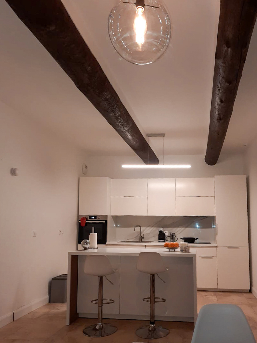À louer, magnifique appartement de 77,9 m² situé au rez-de-chaussée de l’ancien Château du village de Gaubert, à Digne-les-Bains. Ce bien unique allie le charme de l’ancien et le confort du moderne. L’appartement, entièrement rénové avec des matériaux de qualité et meublé avec de l’équipement haut de gamme, se compose d’une cuisine ouverte sur un séjour lumineux offrant une vue dégagée sur la campagne environnante. Il dispose d’une grande chambre avec un lit double (160 cm), d’une salle d’eau équipée d’une douche à l’italienne et habillée de travertin, d’un espace buanderie, ainsi que d’une deuxième chambre comprenant deux lits une personne. L’appartement bénéficie d’une très bonne performance énergétique, garantissant confort et économies. Le loyer est de 820 € par mois, avec 25 € de charges (ordures ménagères). Cadre calme et verdoyant à proximité de Digne-les-Bains. Pour plus d’informations ou pour organiser une visite, merci de nous contacter.