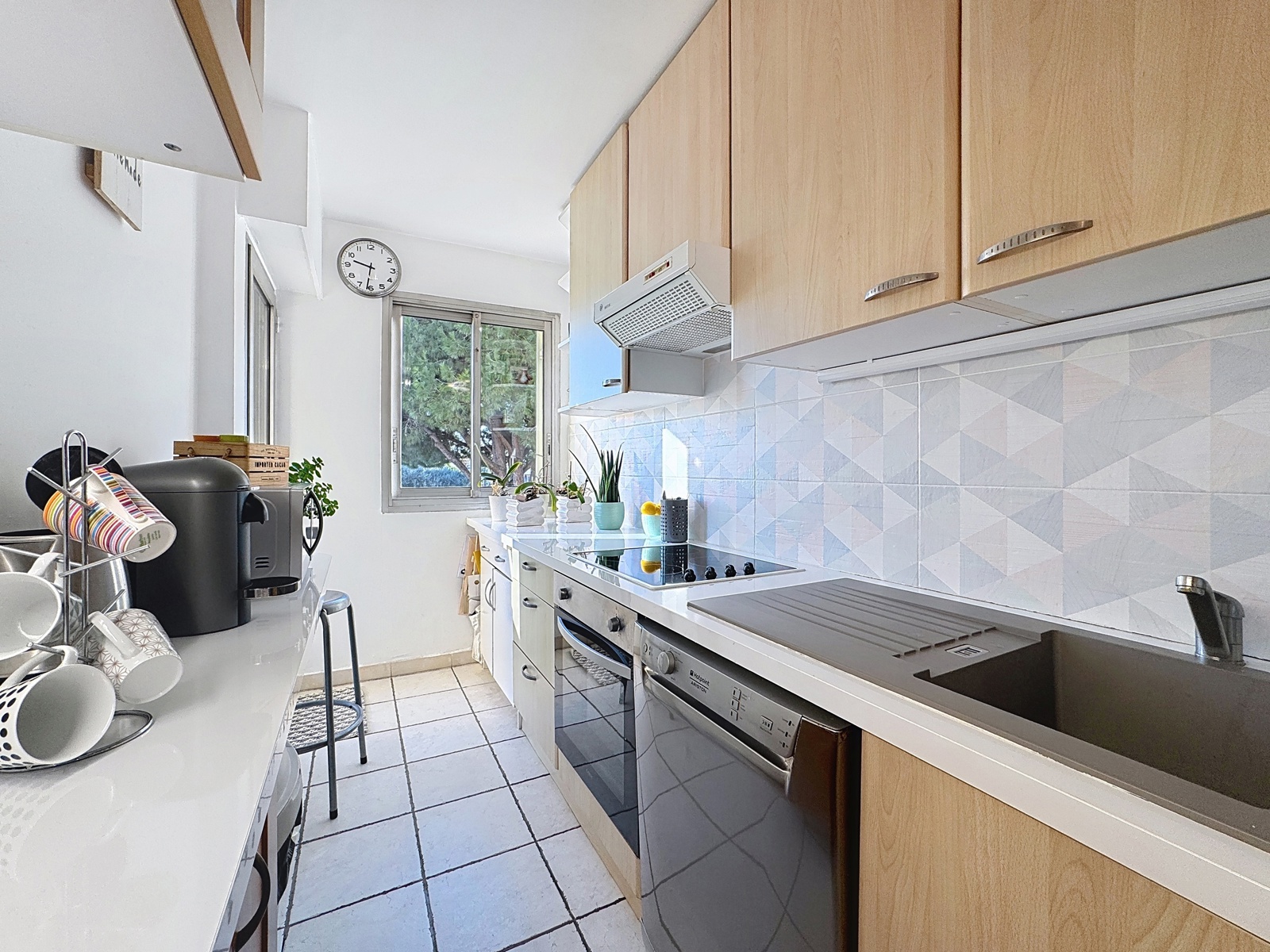 Jules Grec, les Bréguières : exceptionnel, exclusif, dans une toute petite résidence de très bon standing offrant de jolis ESPACES VERTS et une PISCINE, tout sécurisé, À quelques pas seulement de toutes les commodités, les commerces, de tous les axes routiers et proche de la mer, A VENDRE, ce très joli appartement d'angle 2P de quasi 50m2, qui offre grâce à sa double exposition, luminosité et de jolies vues sur les Alpes, le Baou et même une échappée au milieu du vert laissant imaginer la mer et la plage de la Siesta. L'appartement, en parfait état, climatisé bien entendu est également pourvu d'une spacieuse cuisine indépendante, d'un WC indépendant, de dégagements avec rangements, et donc de 2 balcons, le principal étant orienté à "l'Est" dans la verdure.