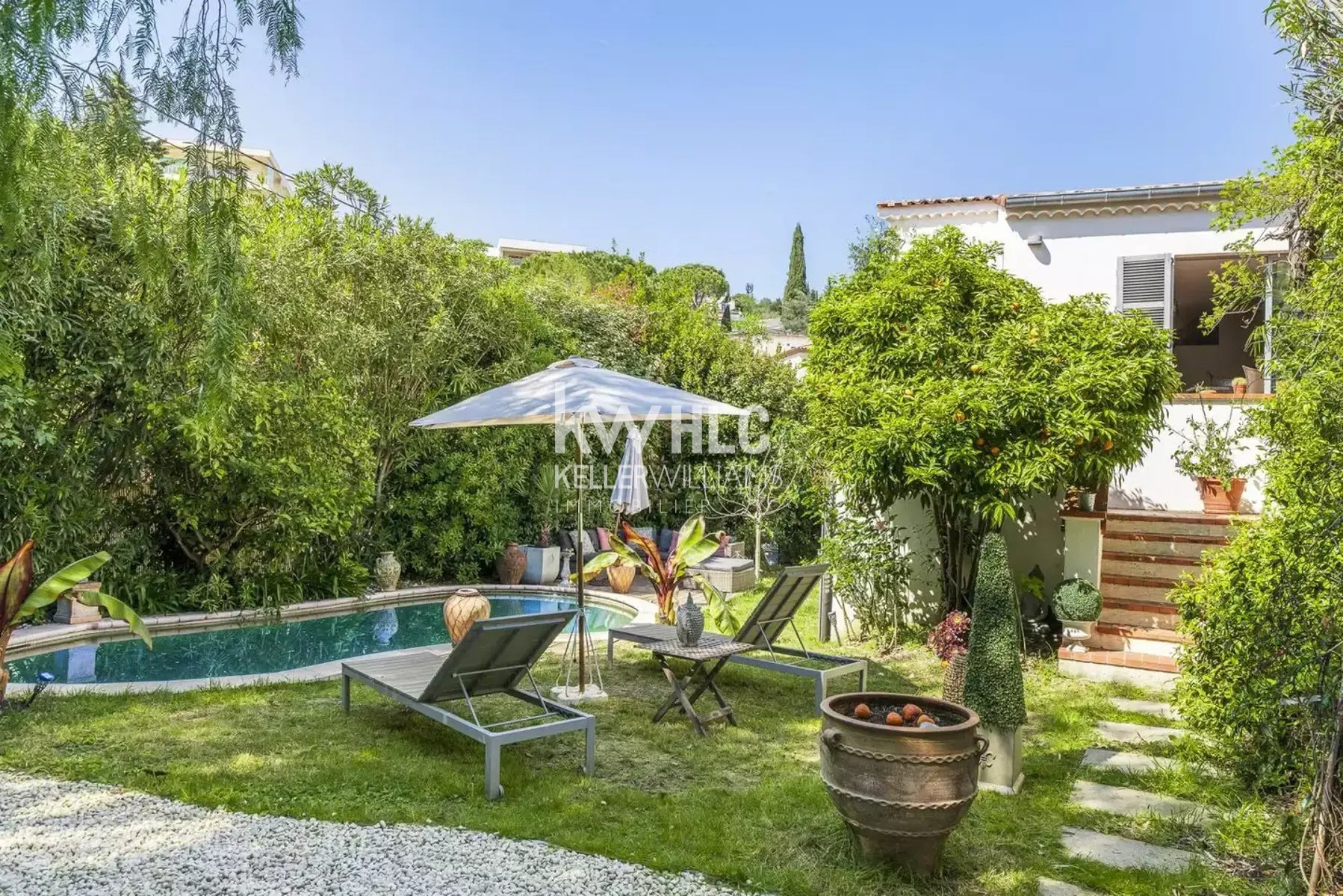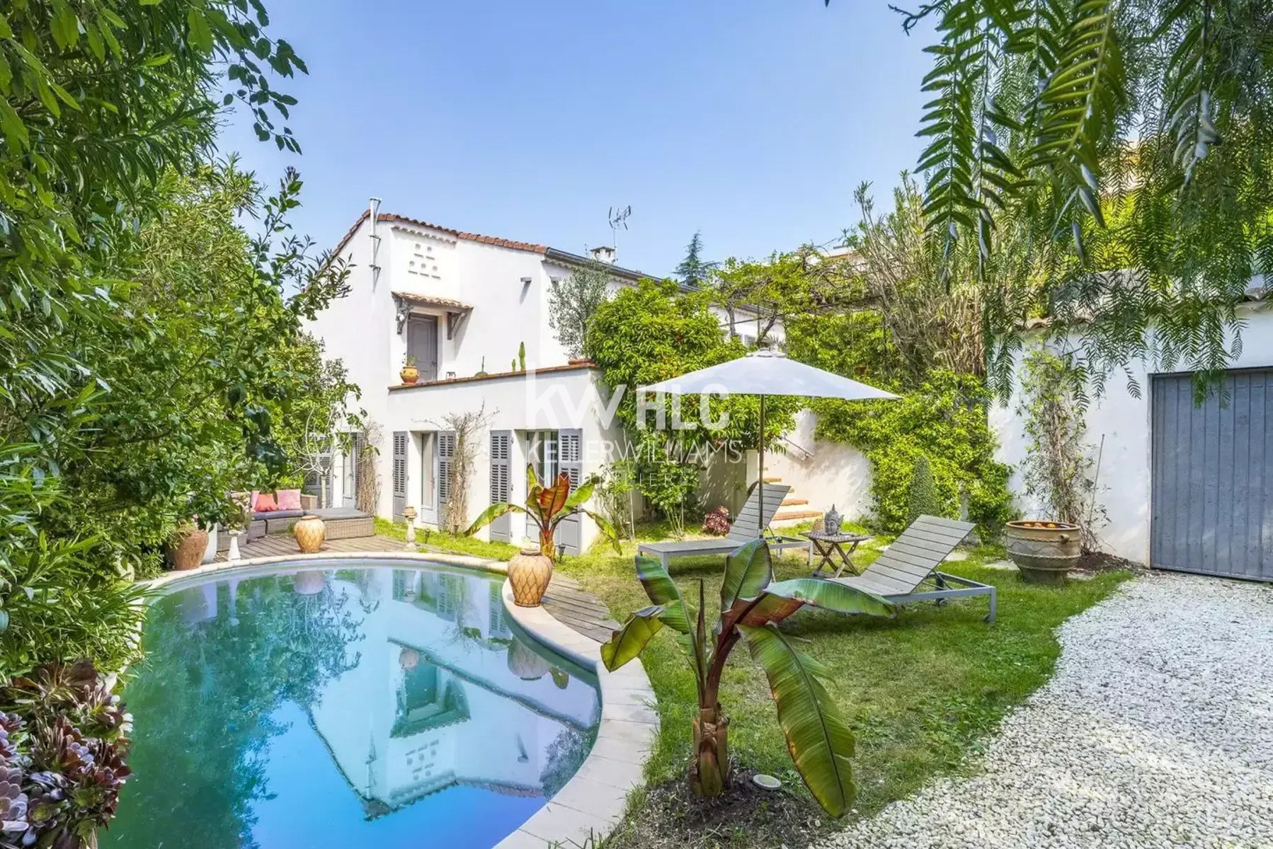 TRES RARE AUX ABORDS DU VIEUX CANNET/ST SAUVEUR/CANNET MAIRIE : CHARMANTE VILLA DE PLUS DE 150 M2 SUR TERRAIN DE 415 M2 AVEC BELLE PISCINE ET SPACIEUX GARAGE Charmante villa de plus 150m² sur un terrain de 415 m2 avec jardin + 2 grandes terrasses, aux essences méditerranéennes avec arbres fruitiers et exotiques, une belle piscine (7mx3m) située aux abords du Vieux Cannet/St Sauveur/Cannet Mairie à proximité des transports et des commerces. Un garage de 33 m2 et une cave de 40 m2 complètent ce bien. Totalement rénovée en 2020 et très bien agencée, cette villa présente des prestations de bon goût et de nombreux rangements, elle est située dans un environnement protégé du vis-à-vis, avec vue sur le jardin et la piscine. Vous découvrirez en premier lieu un hall d'entrée donnant sur un spacieux séjour/salle à manger avec une cuisine ouverte équipée (60 m2) tout en baies vitrées donnant sur deux terrasses (80 m2) orientées SUD lui conférant une luminosité exceptionnelle. Suivent deux chambres dont l'une bénéficie d'une salle de bain privative (15 m2 et 10m2). Un WC indépendant complète cet étage. Au rez-de-jardin, un lobby/ bureau pouvant servir de chambre d'appoint, deux chambres dont l'une avec salle d'eau privée donnant sur la piscine (18 m2), une autre sur le jardin (16 m2), une charmante salle de bains avec WC, un dressing aménagé (8m2) et une buanderie. Beau jardin avec arbres fruitiers (figuier, orange amère, pêcher, mirabellier, citronnier, olivier, vigne) et exotiques, une piscine de 21 m2, deux belles terrasses dont l'une avec pergola recouverte de vigne, un spacieux garage de 33 m2 pour 2 voitures + parkings (cinq places possibles en tout) rare dans le secteur et une cave de 40 m2. Le charme des années 60 avec des prestations modernes : Double vitrage aluminium neufs, CLIMATISATION réversible en gainable, pompe à chaleur, toiture neuve et ravalement de façade effectués en 2020, chauffe-eau neuf, portail électrique, .. Aucun travaux à prévoir. DPE C et A