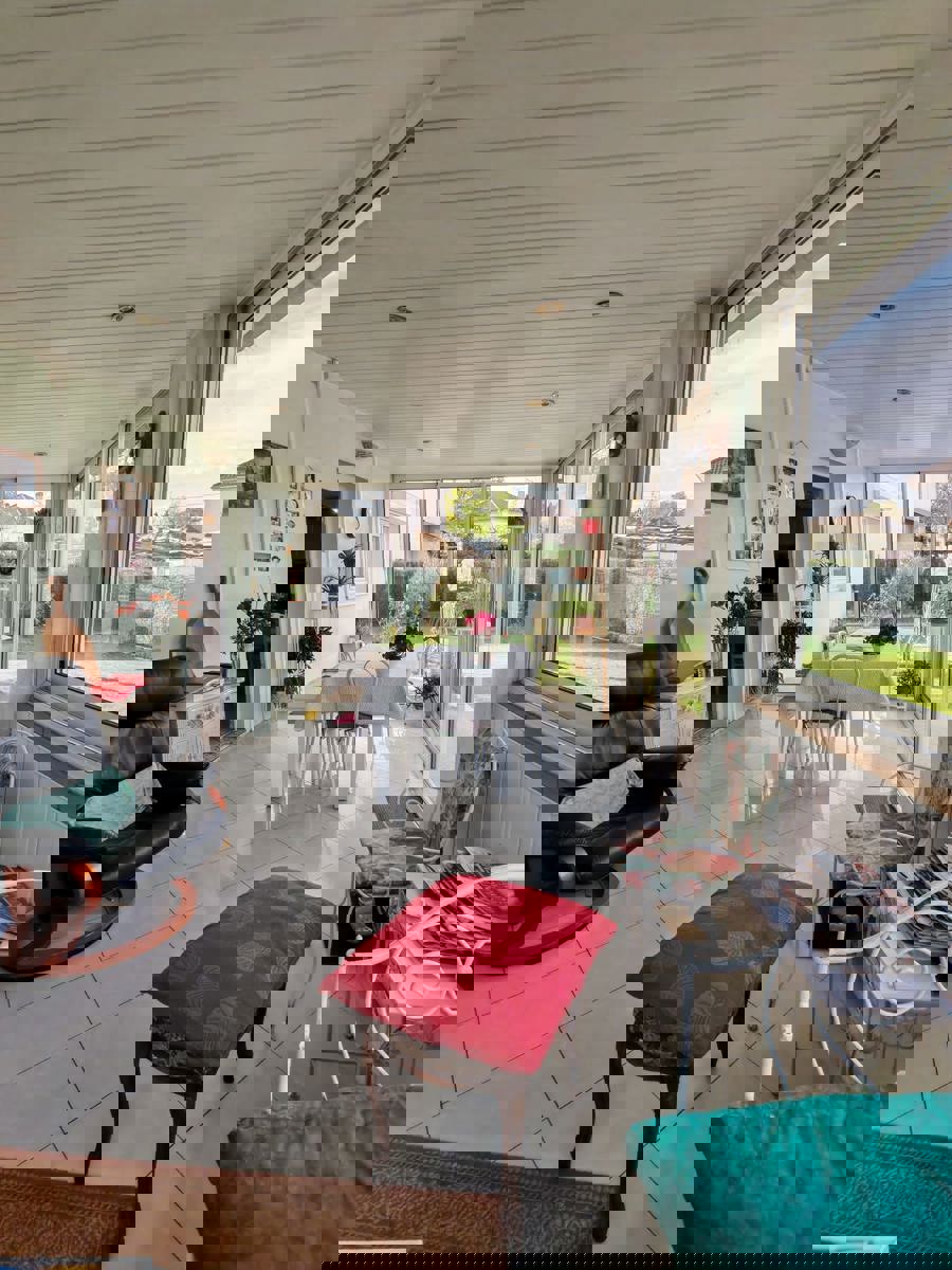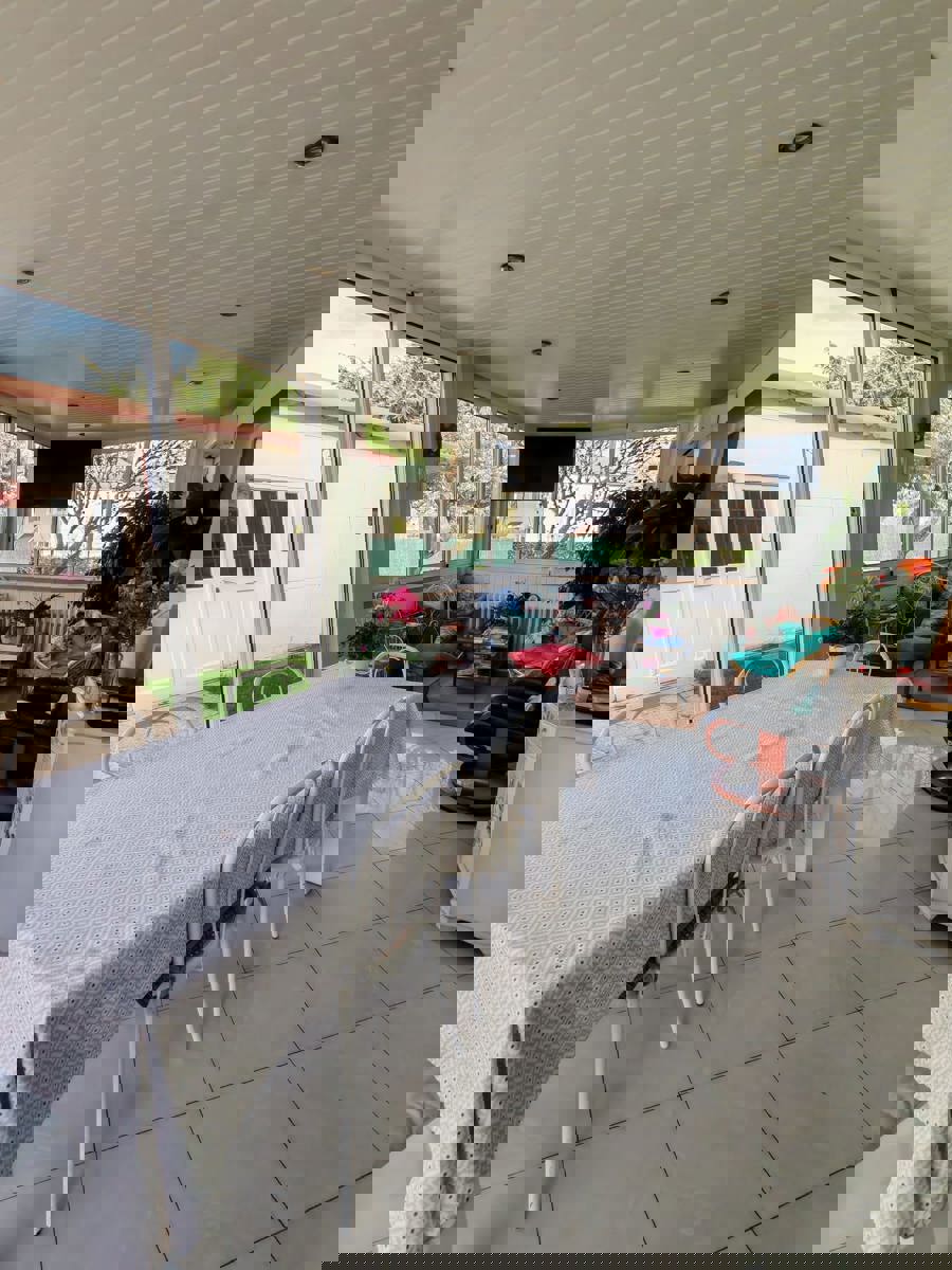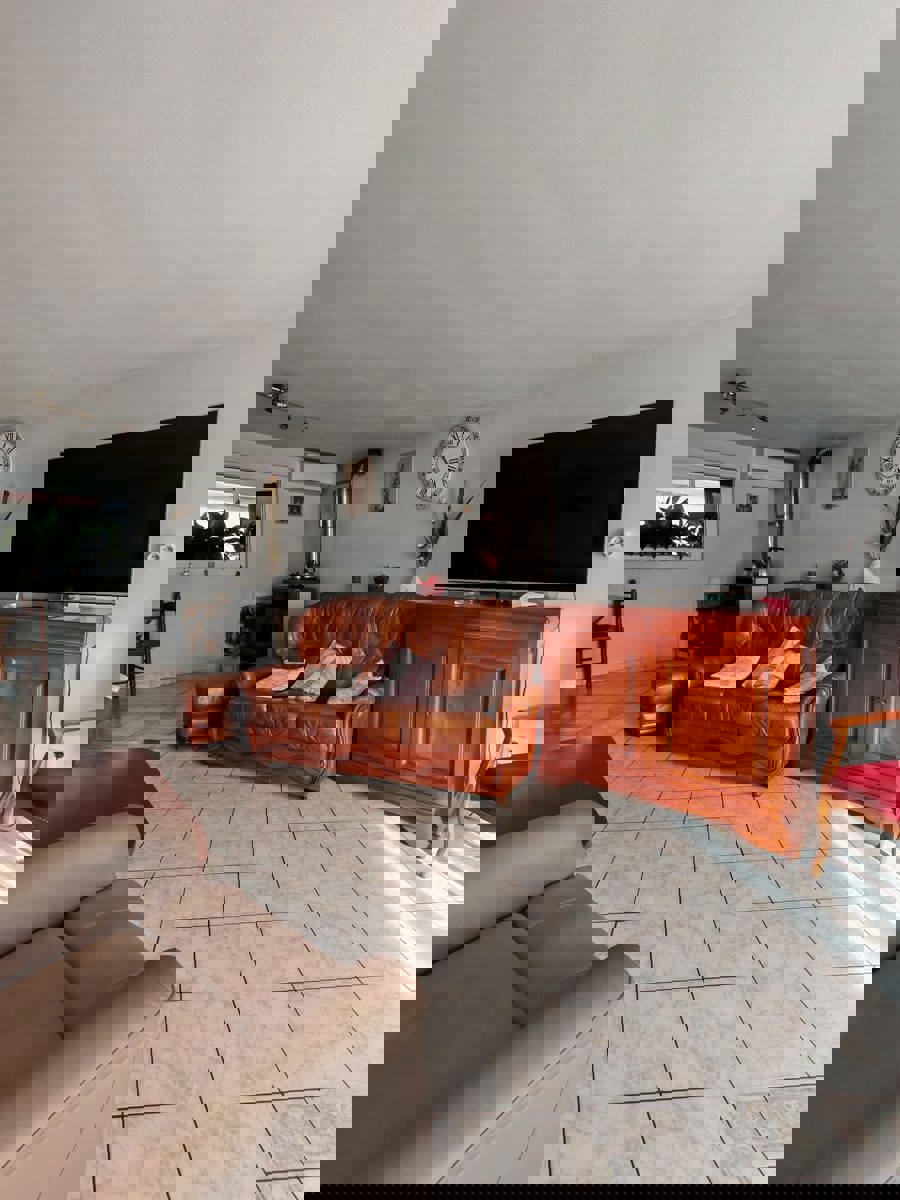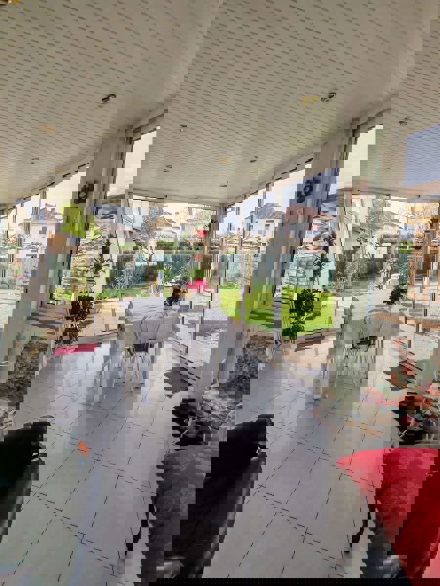 Le rez-de-jardin se compose d’une entrée, d’une pièce de vie avec cuisine ouverte, d’une chambre, d’une salle d’eau avec WC ainsi que d’une véranda climatisée donnant directement sur le jardin.À l’étage, un dégagement dessert deux chambres supplémentaires, une salle d’eau, une cuisine indépendante, un salon-séjour avec accès sur le balcon et un WC séparé.